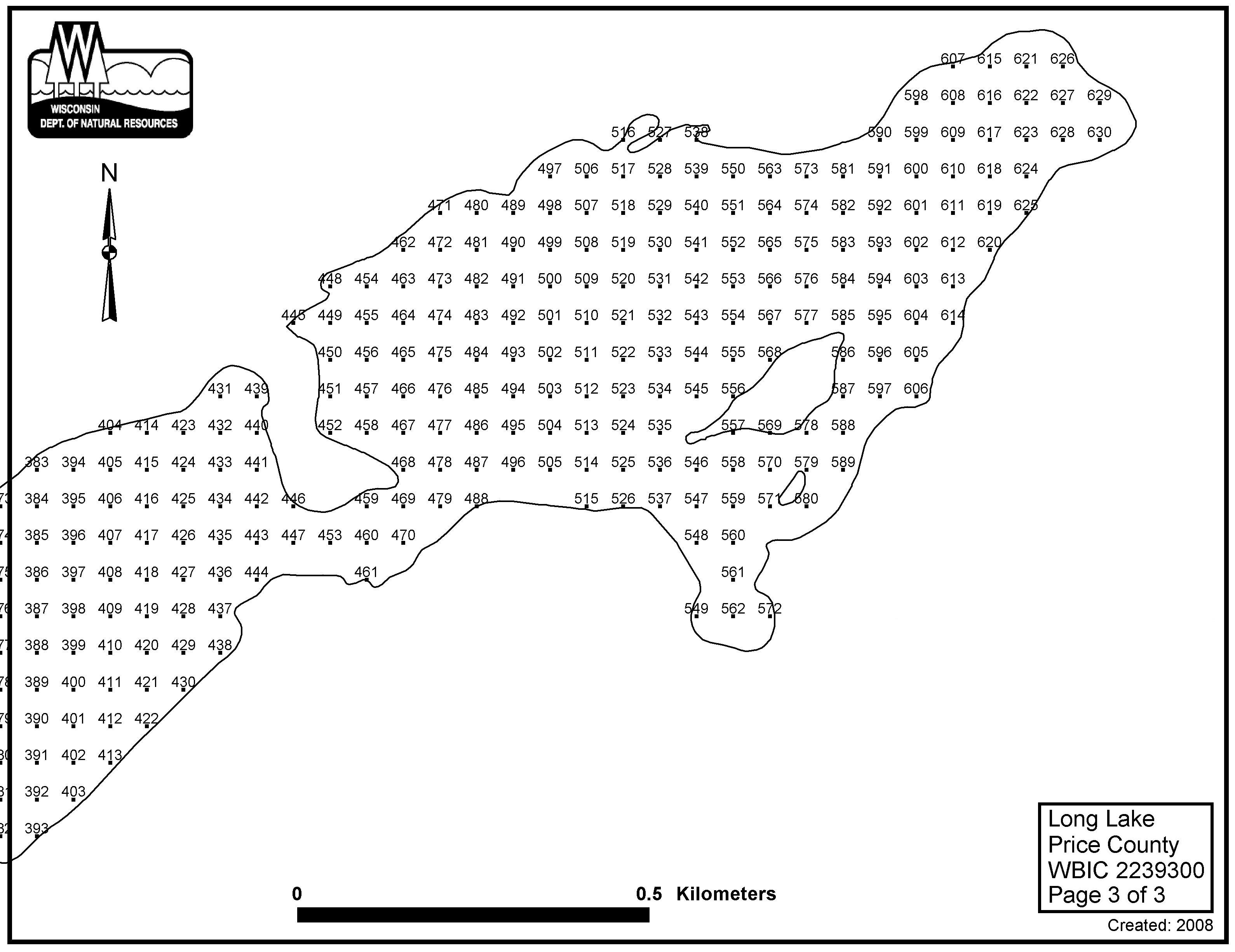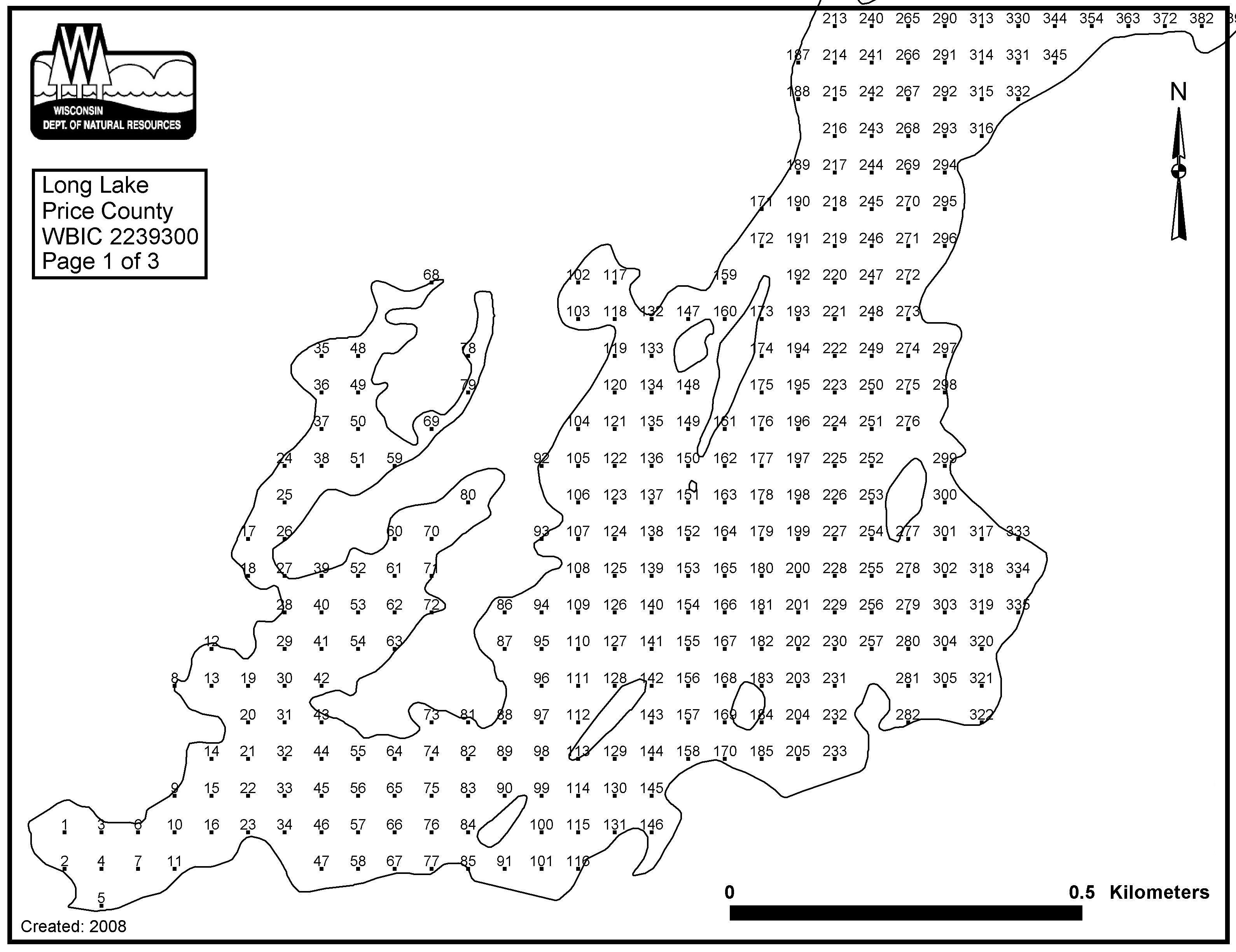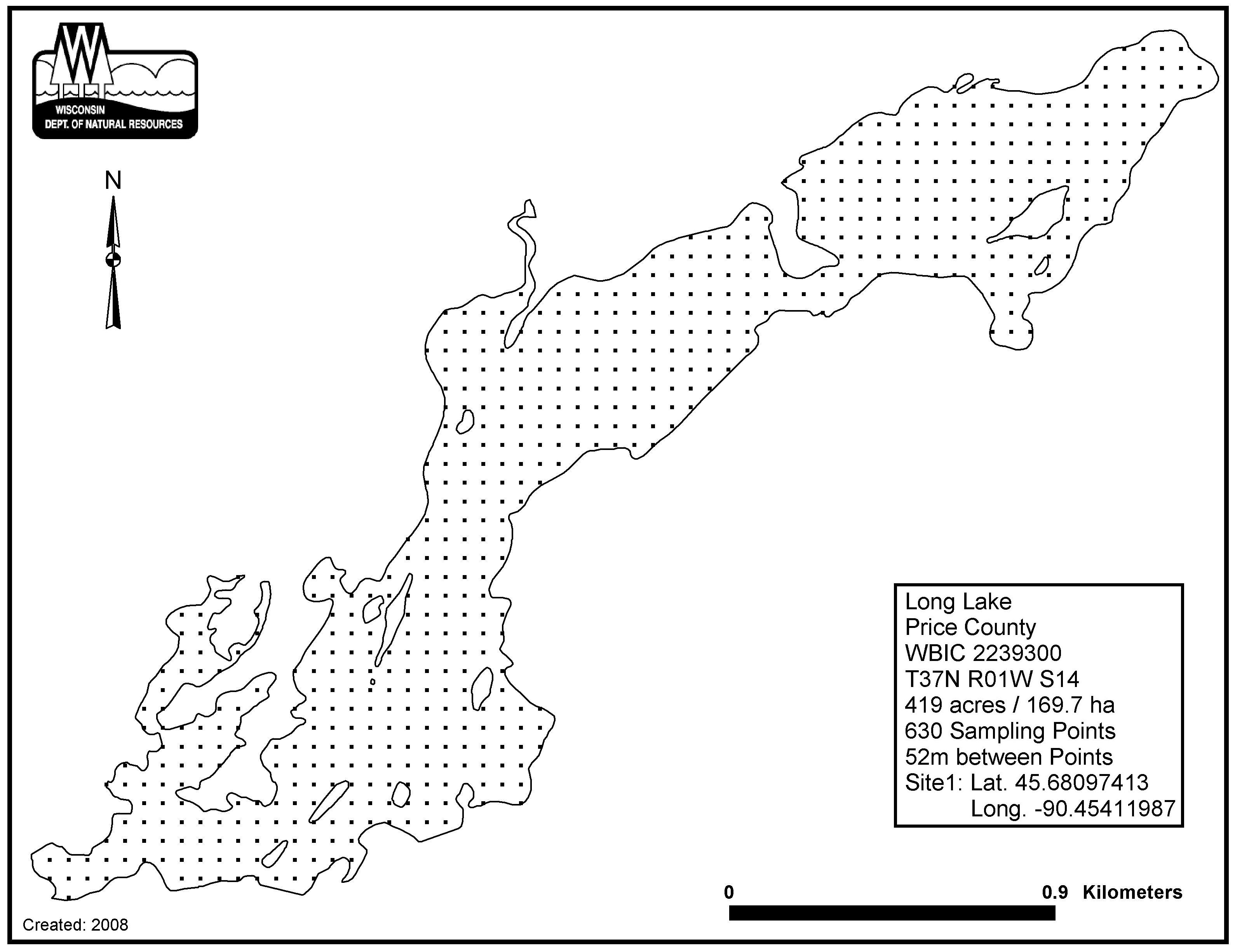 Long Lake, Price County - Aquatic Plant Sampling Map (3)(52 mpts)