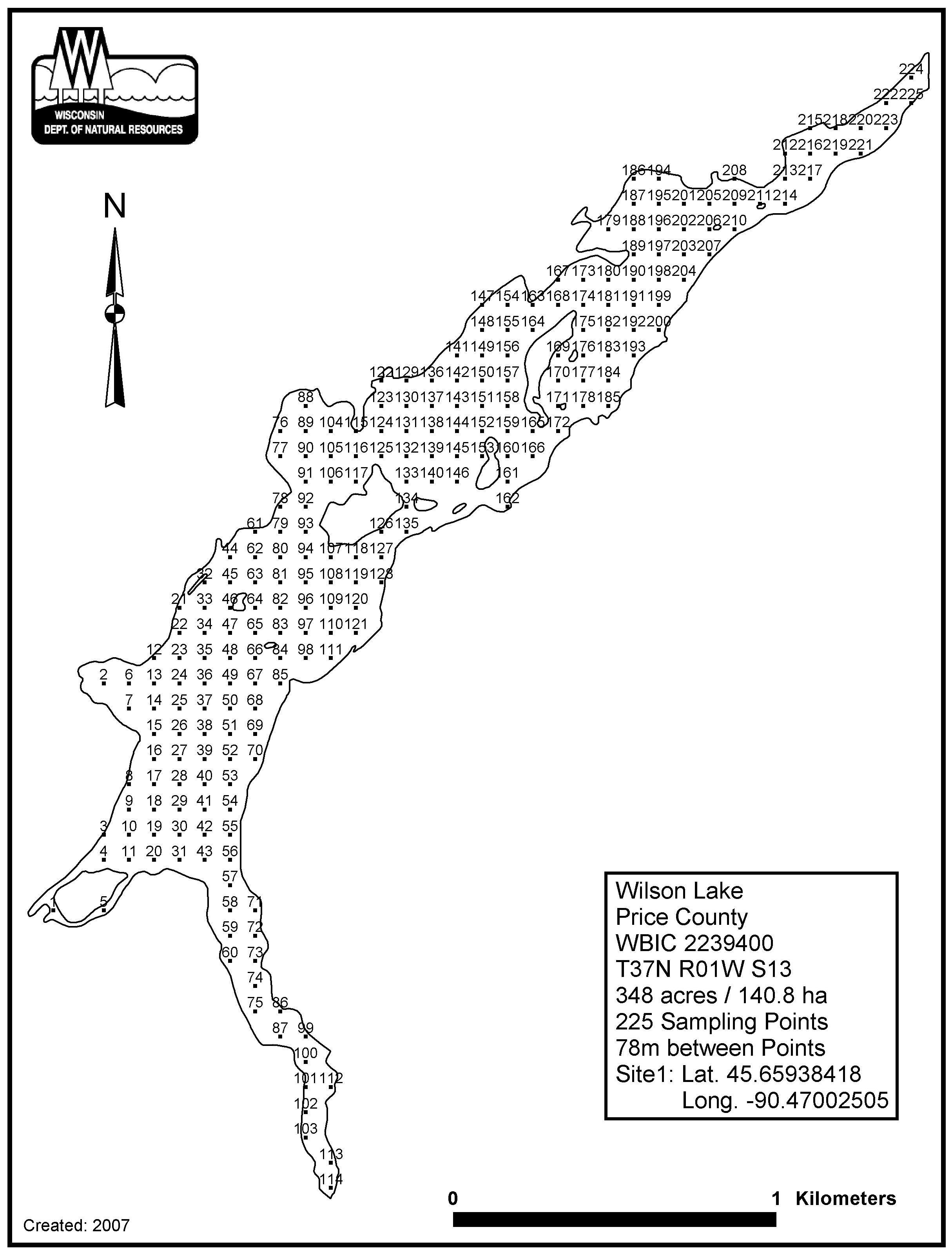 Wilson Lake, Price County - Aquatic Plant Sampling Map (78 mpts)