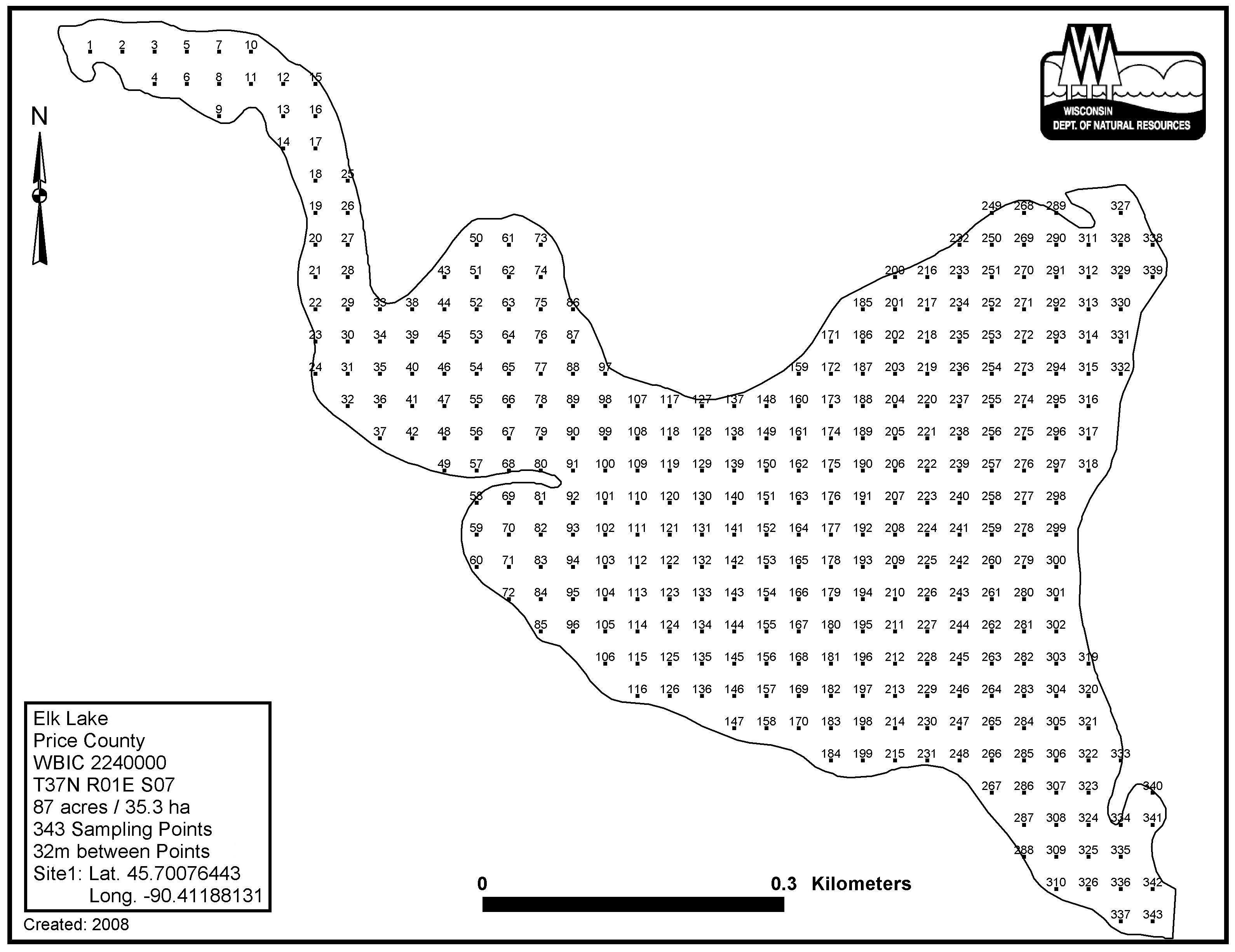 Elk Lake, Price County - Aquatic Plant Sampling Map (32 mpts)