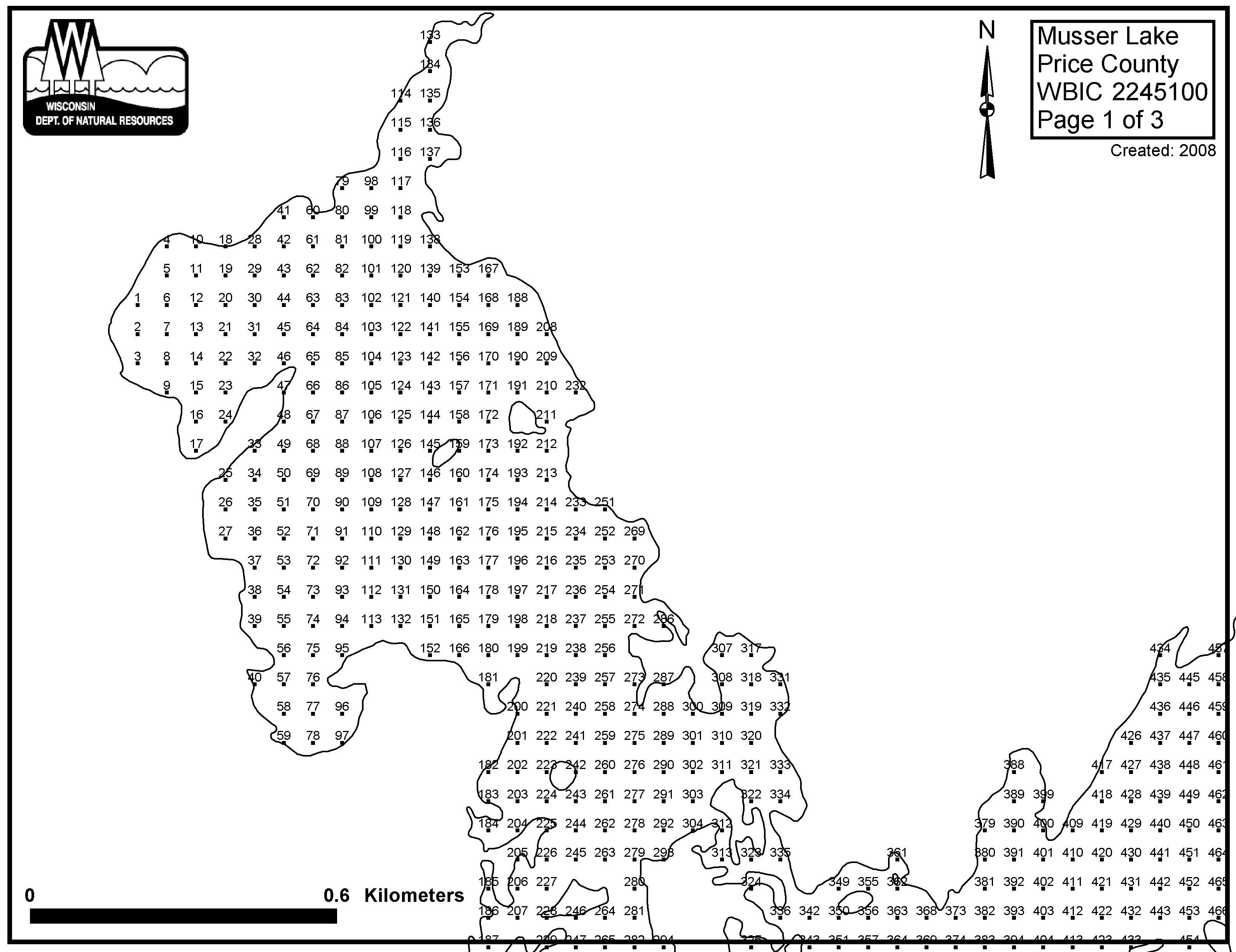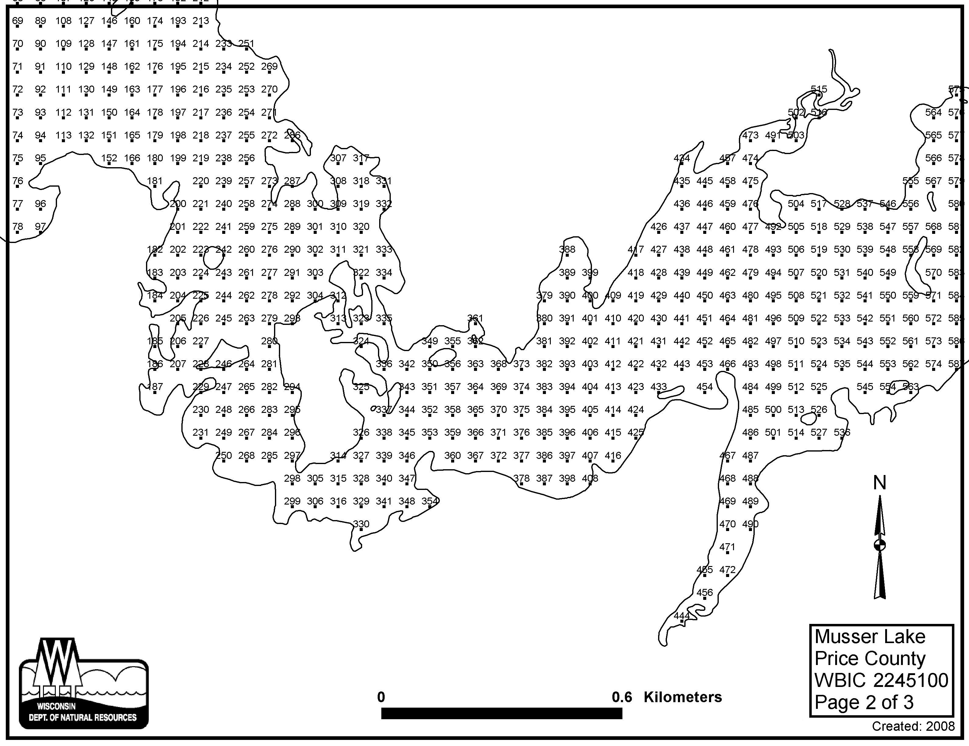 Musser Flowage, Price County - Aquatic Plant Sampling Map (3)(57 mpts)