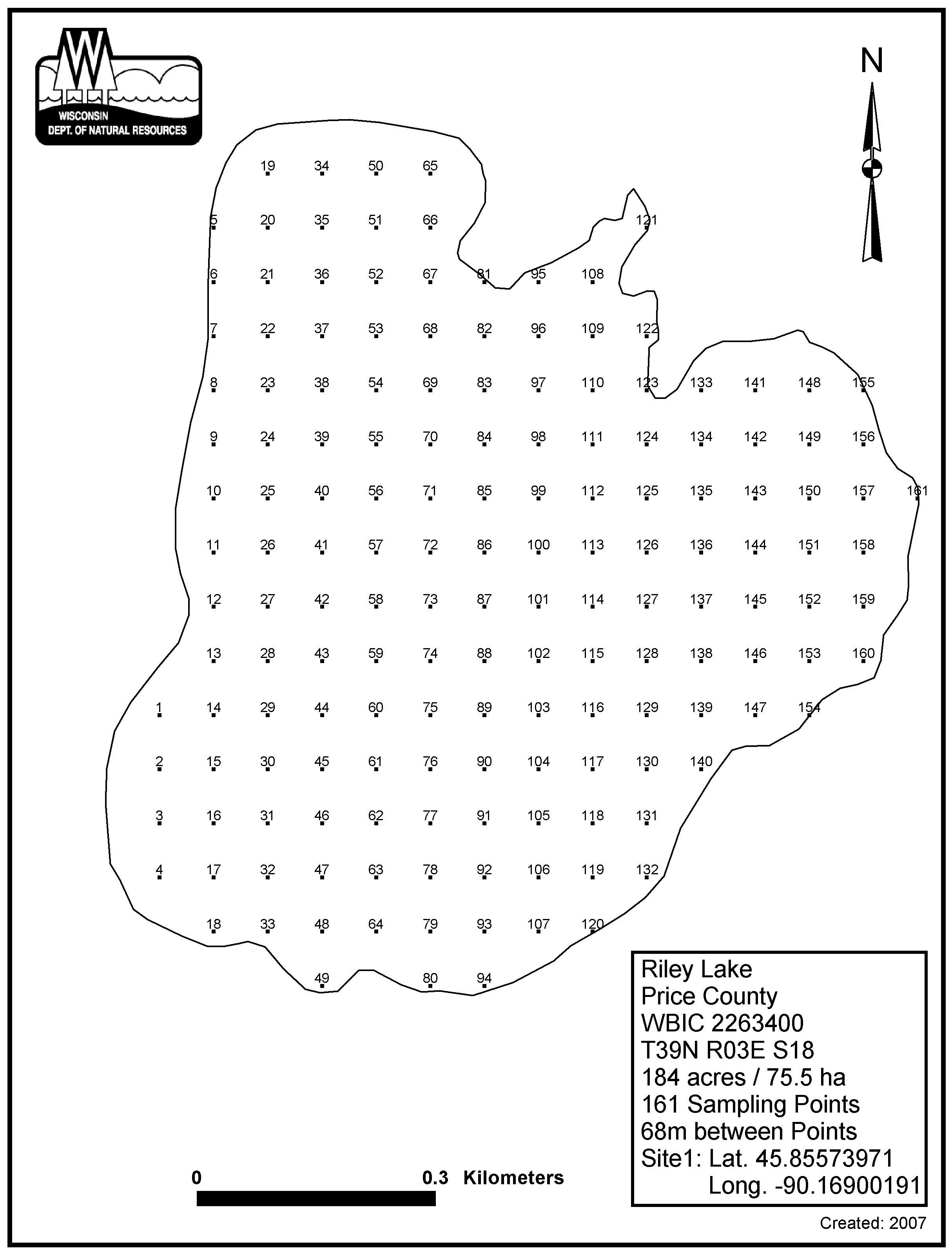 Riley Lake, Price County - Aquatic Plant Sampling Map (68 mpts)