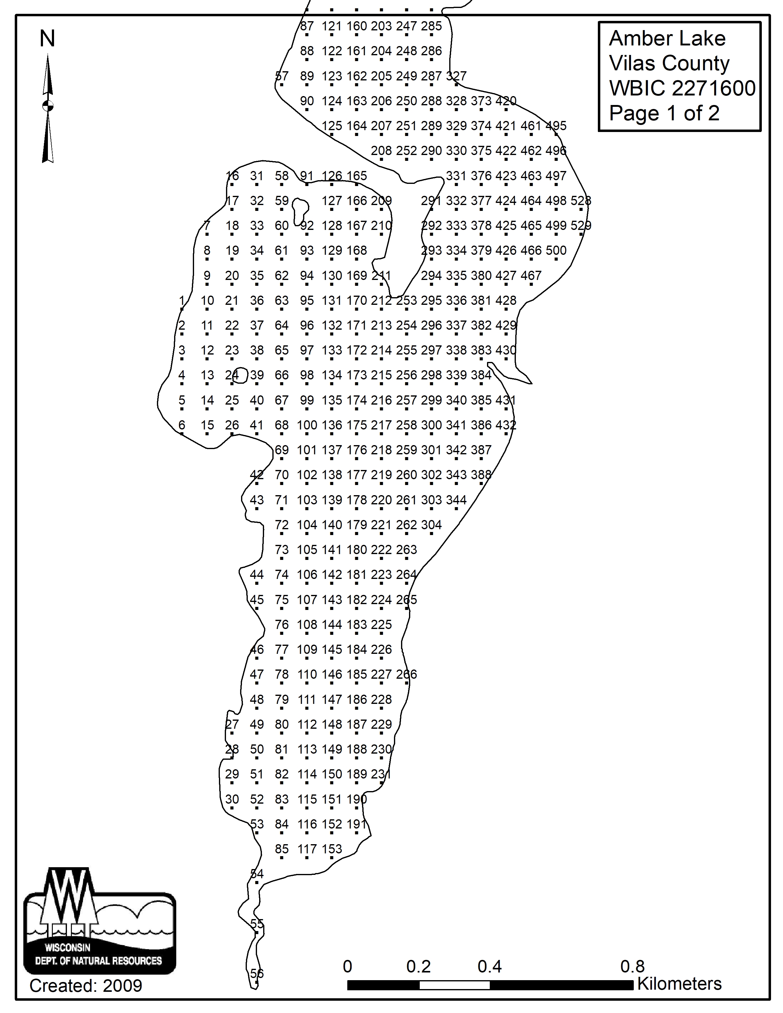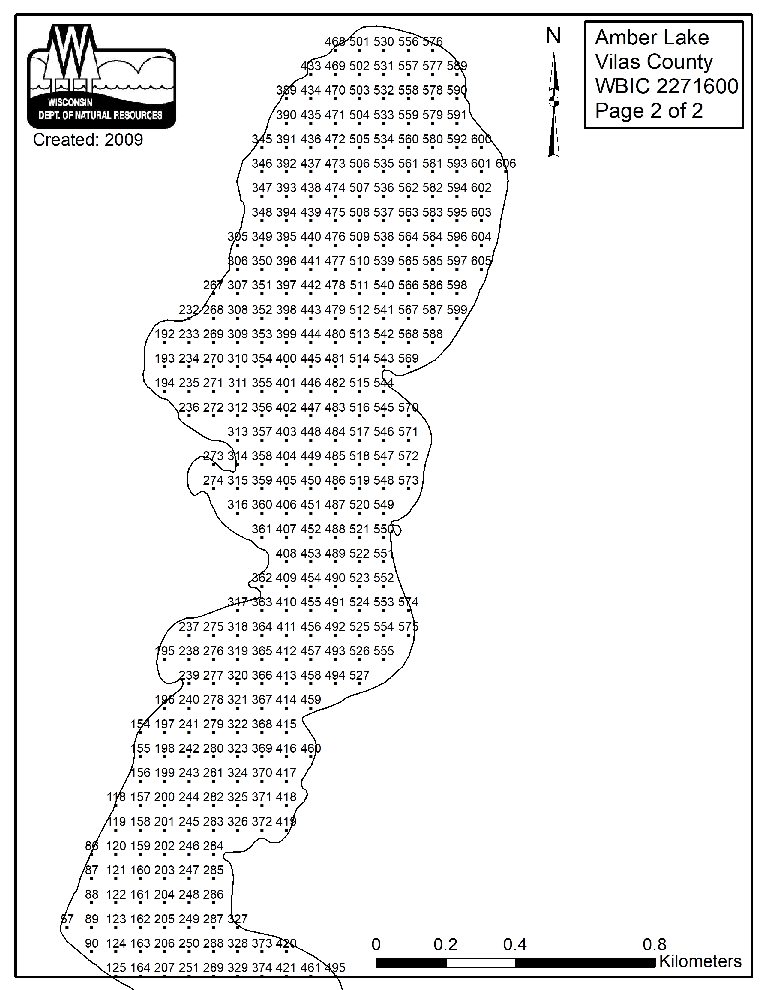 Amber Lake, Vilas County - Aquatic Plant Sampling Map (2)(70 mpts)