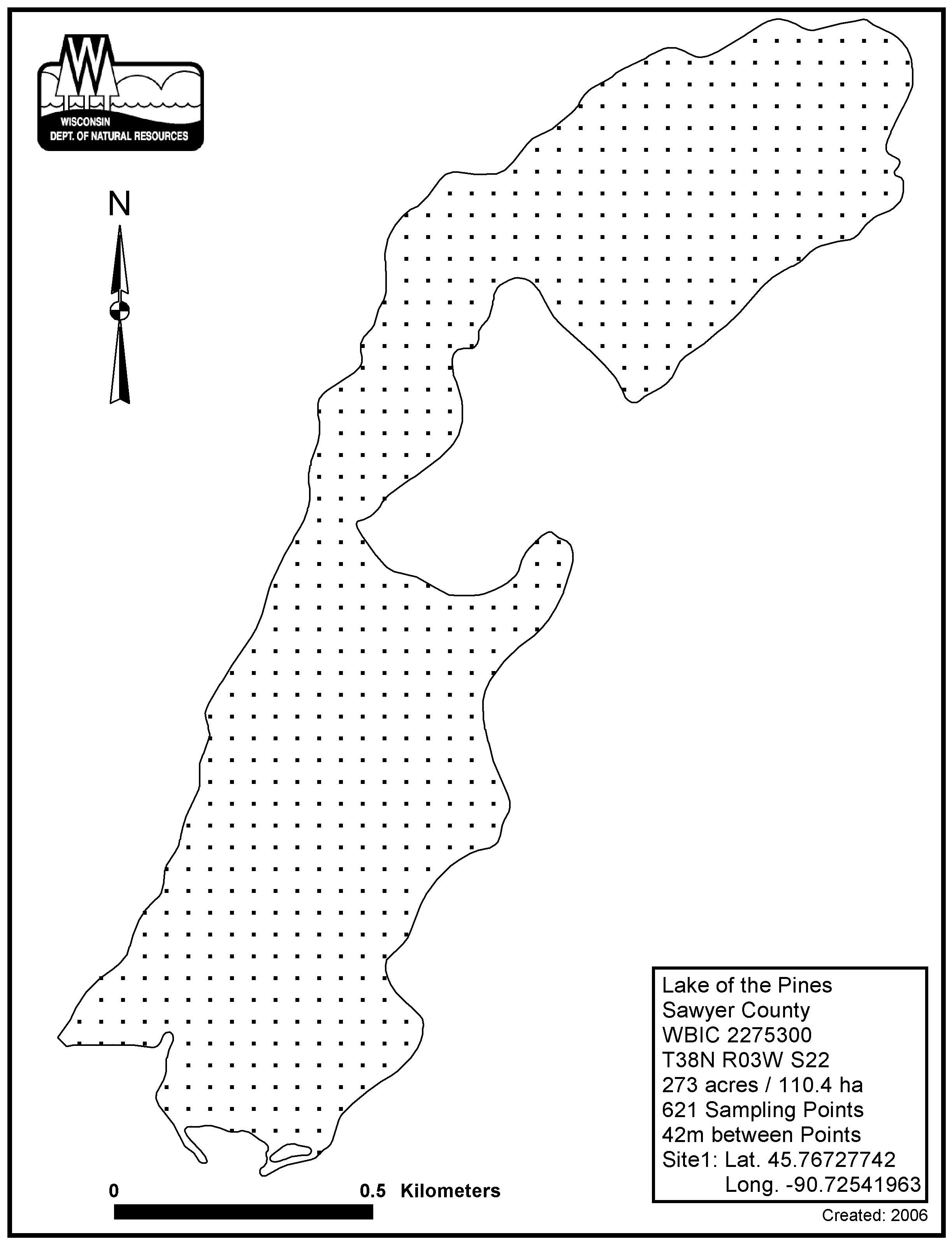 Lake of the Pines, Sawyer County - Aquatic Plant Sampling Map (42 mpts)