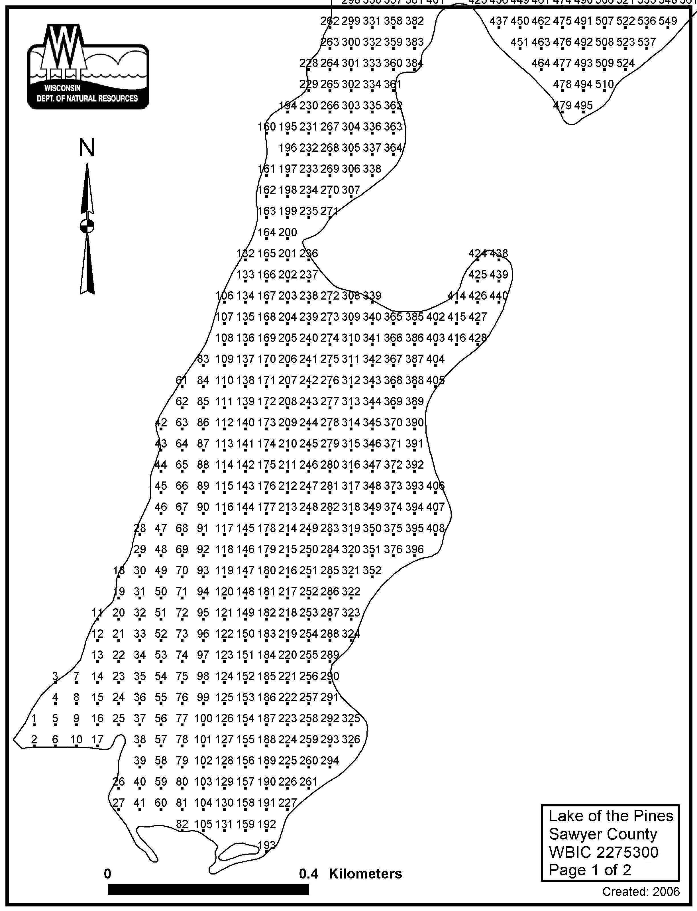 Lake of the Pines, Sawyer County - Aquatic Plant Sampling Map (2)(42 mpts)