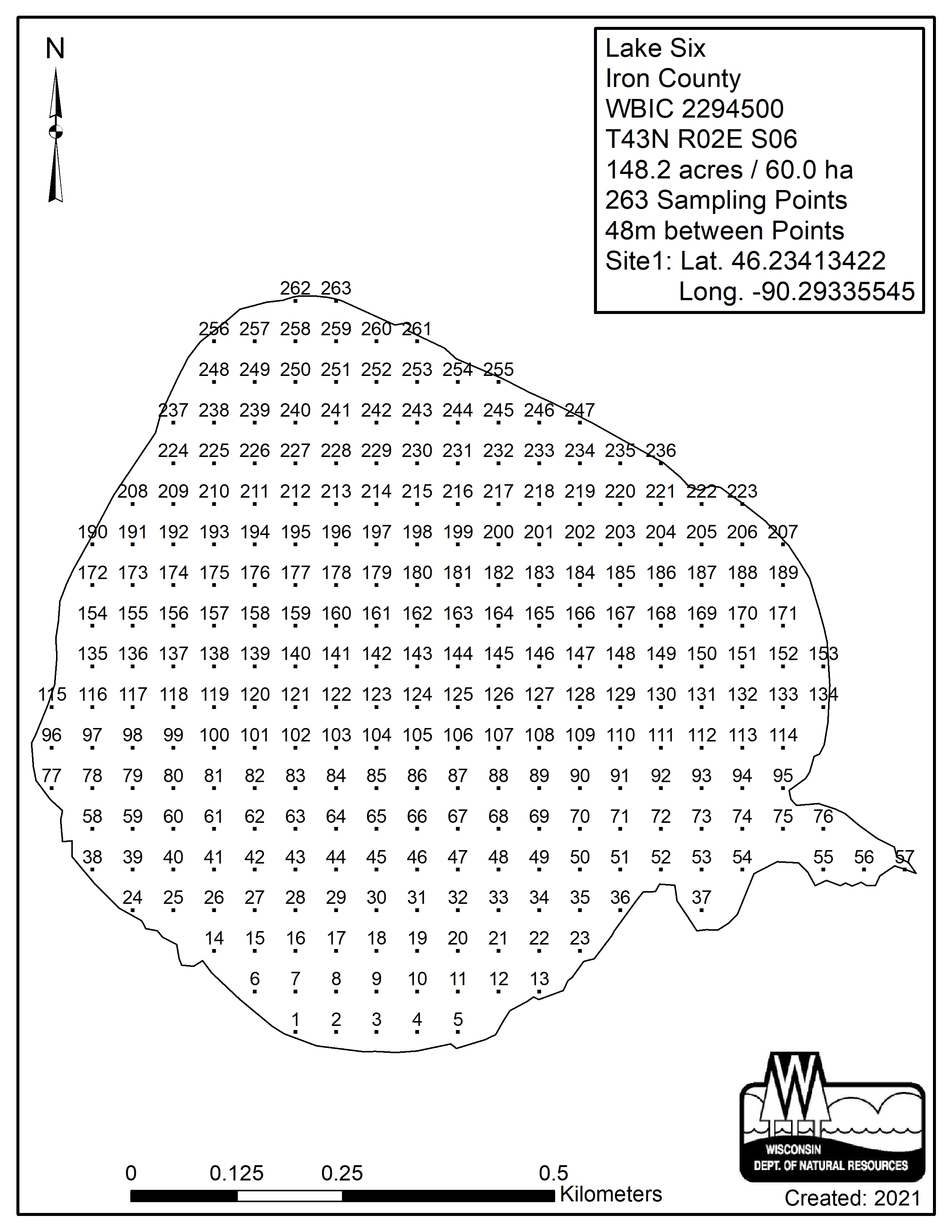 Lake Six, Iron County - Aquatic Plant Sampling Map (48 mpts)