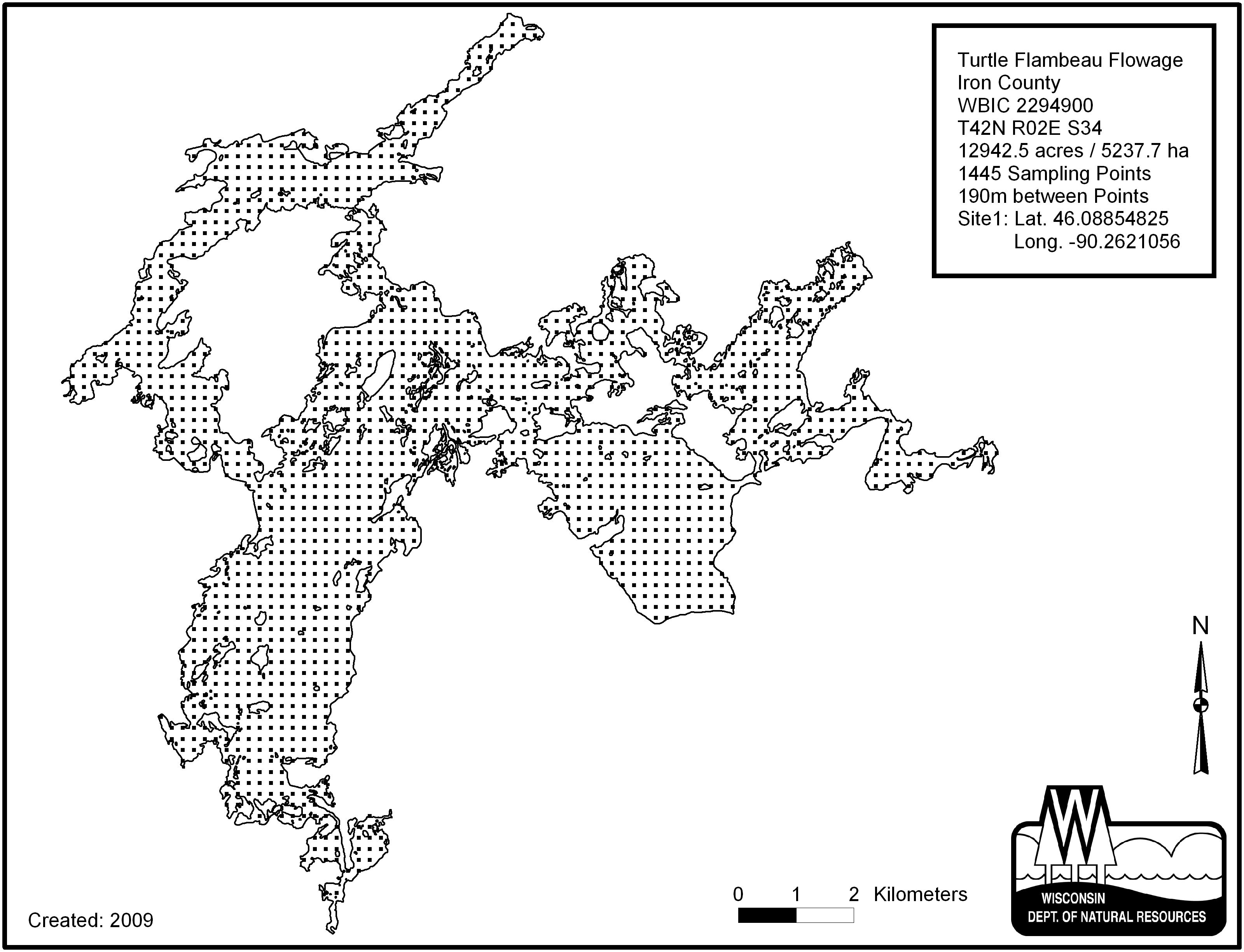 Turtle Flambeau Flowage, Iron County - Aquatic Plant Sampling Map (1)(190 mpts)