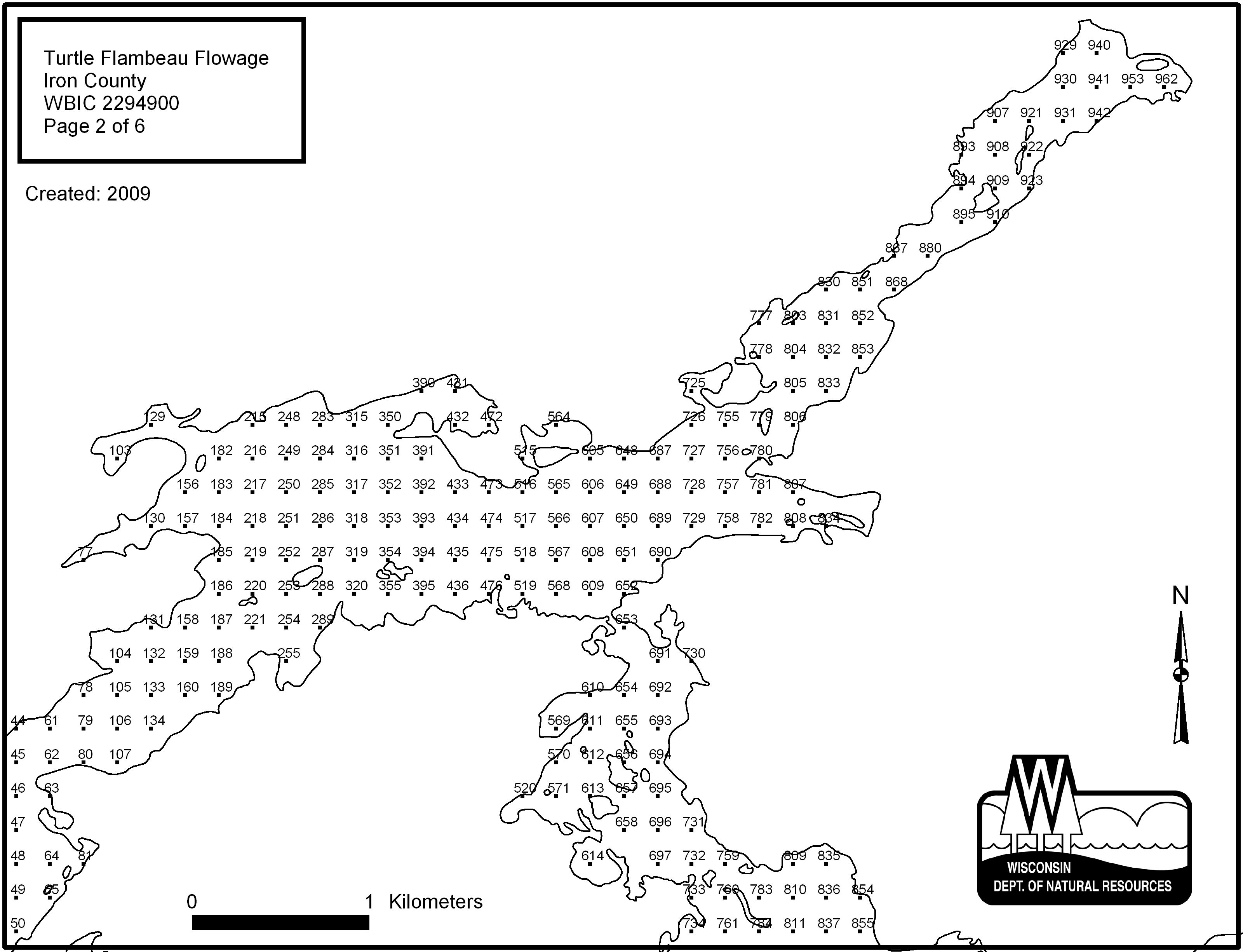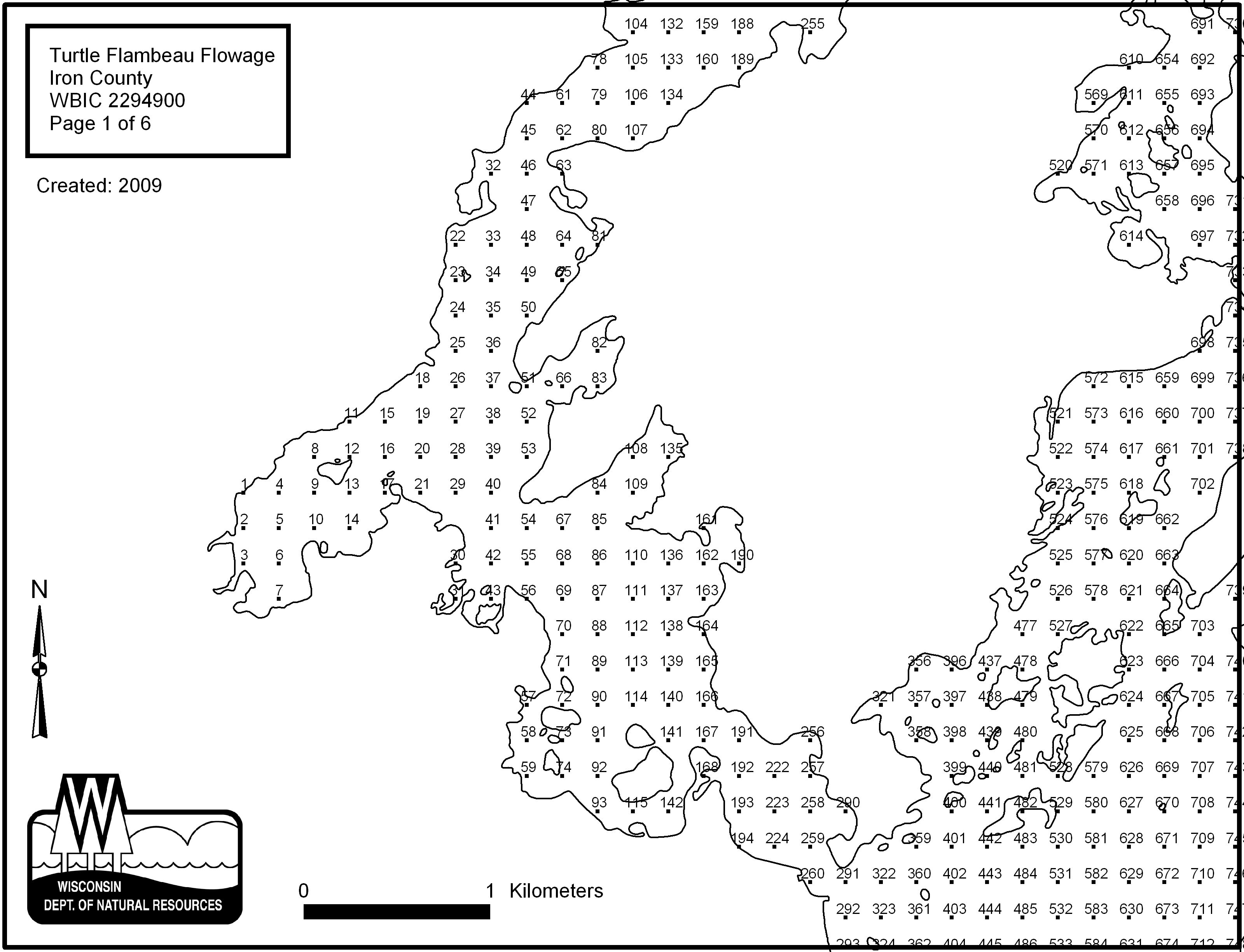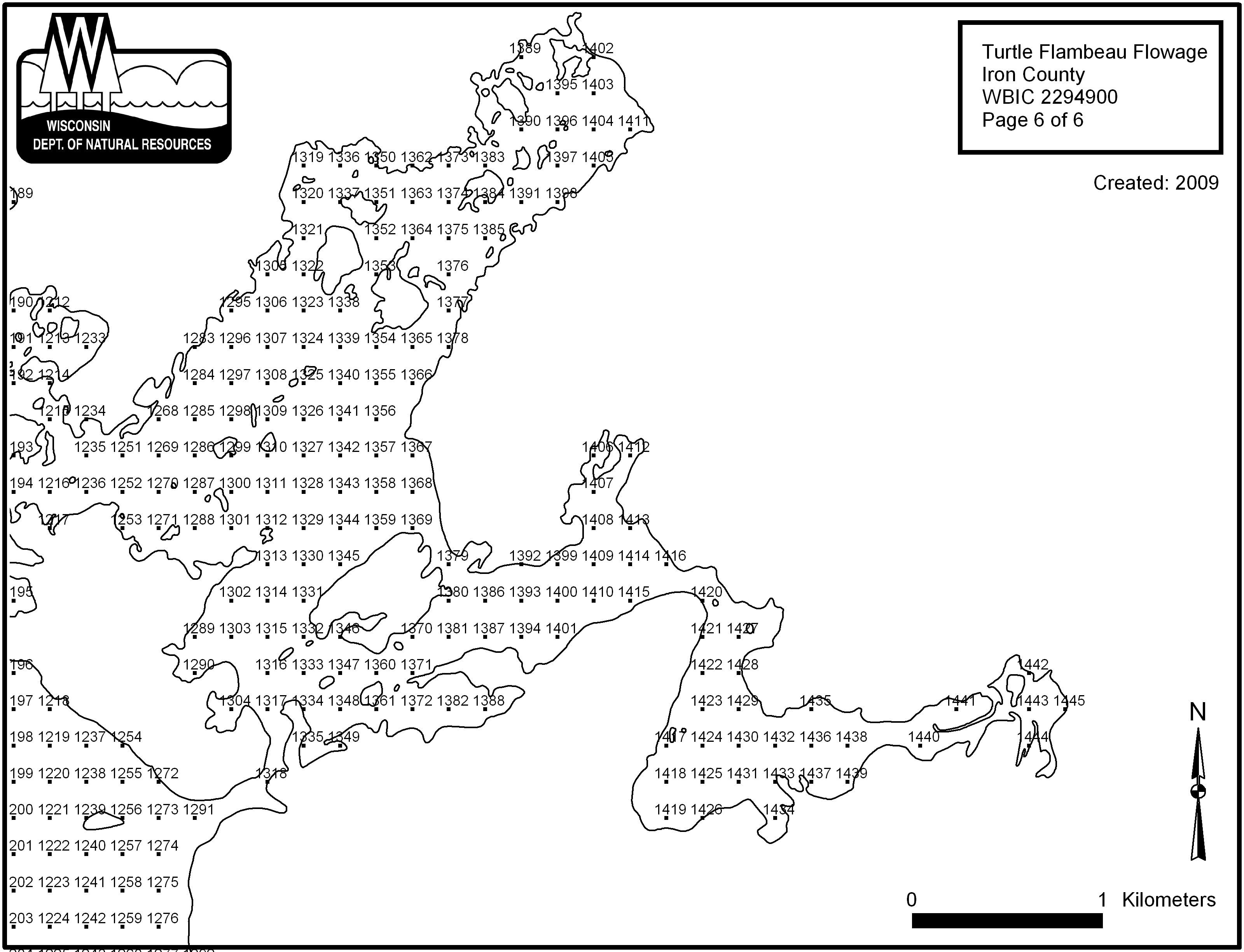Turtle Flambeau Flowage, Iron County - Aquatic Plant Sampling Map (6)(190 mpts)