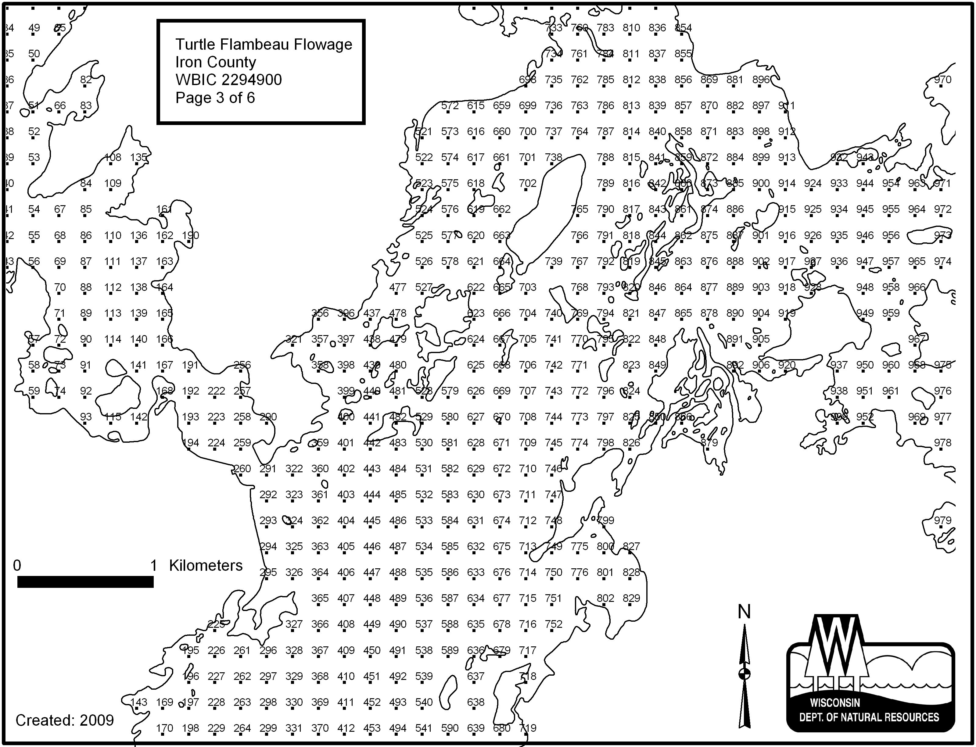 Turtle Flambeau Flowage, Iron County - Aquatic Plant Sampling Map (3)(190 mpts)