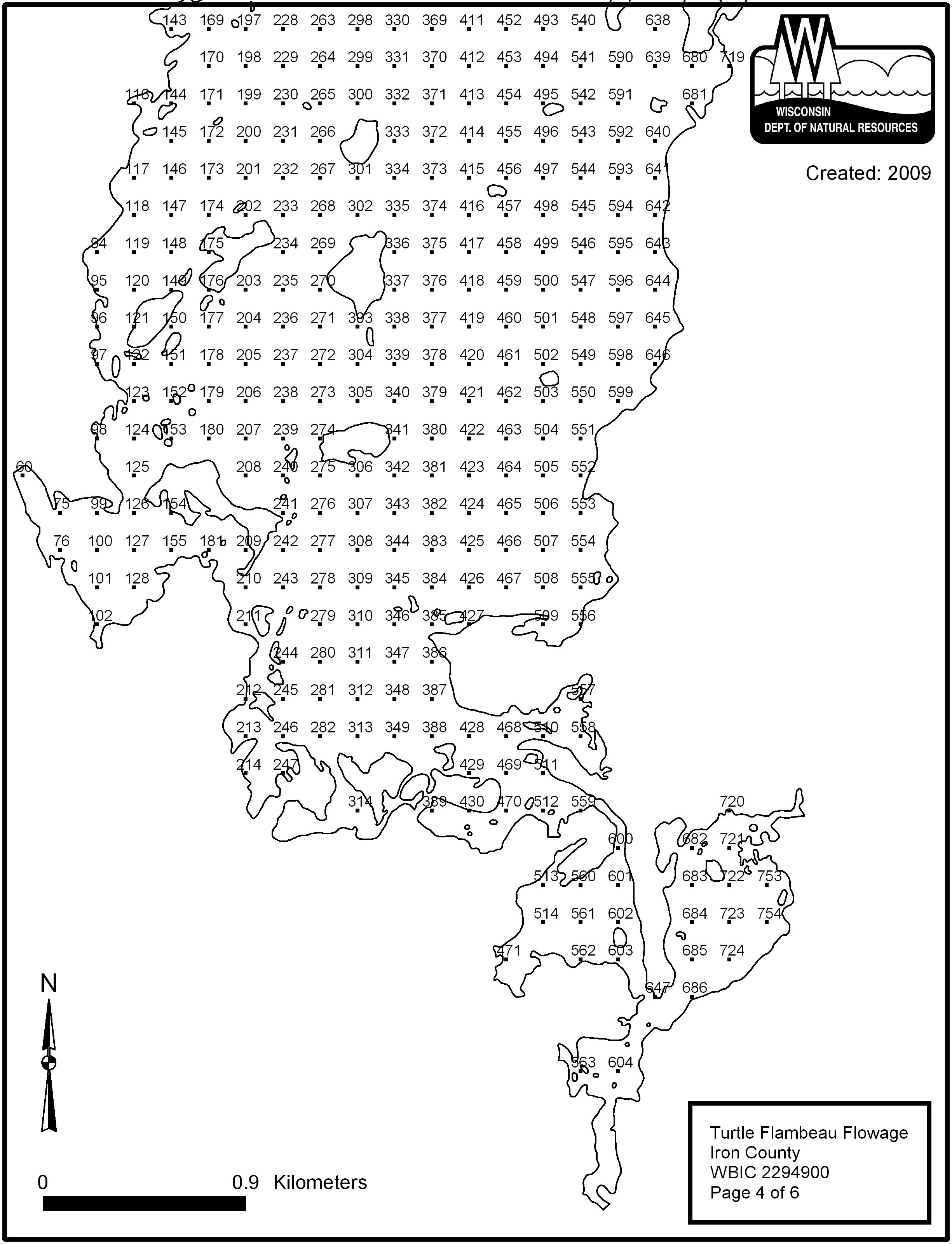 Turtle Flambeau Flowage, Iron County - Aquatic Plant Sampling Map (4)(190 mpts)