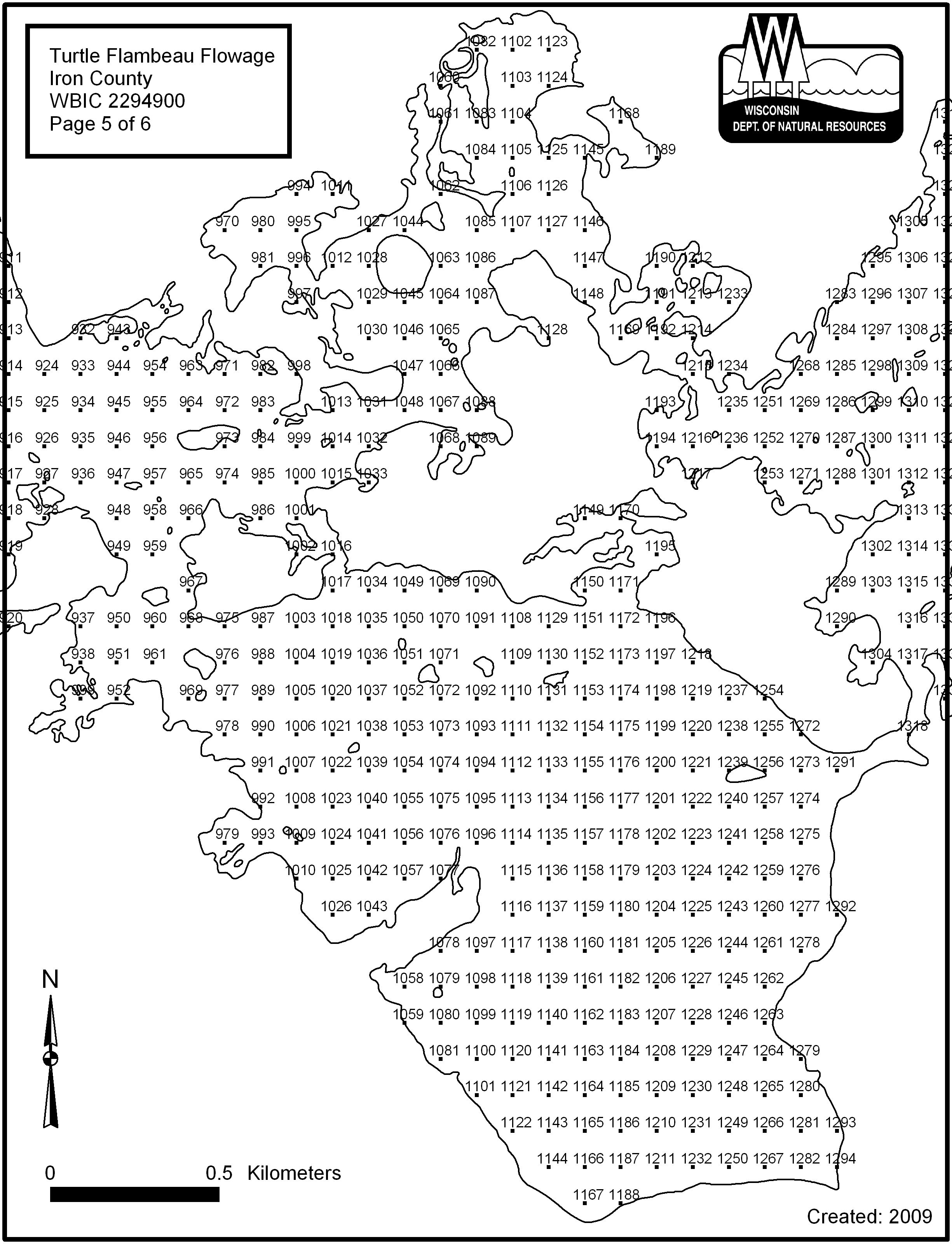 Turtle Flambeau Flowage, Iron County - Aquatic Plant Sampling Map (5)(190 mpts)