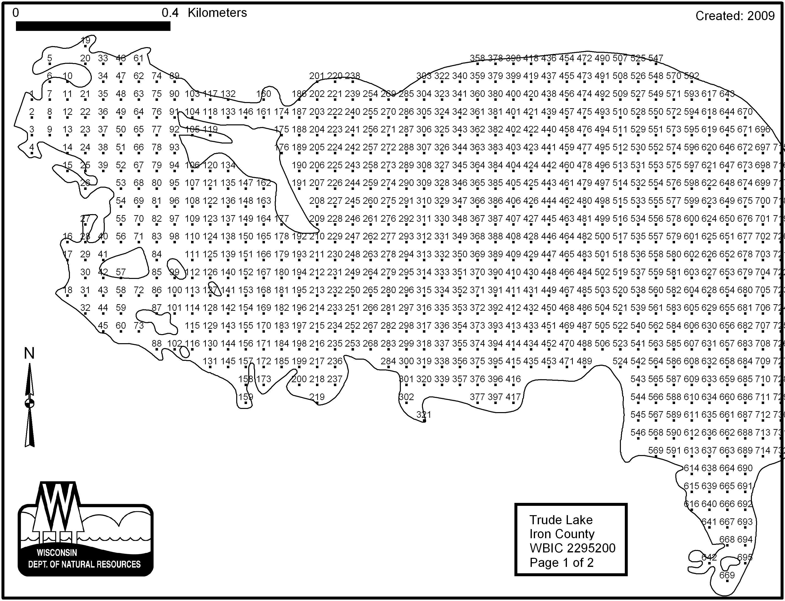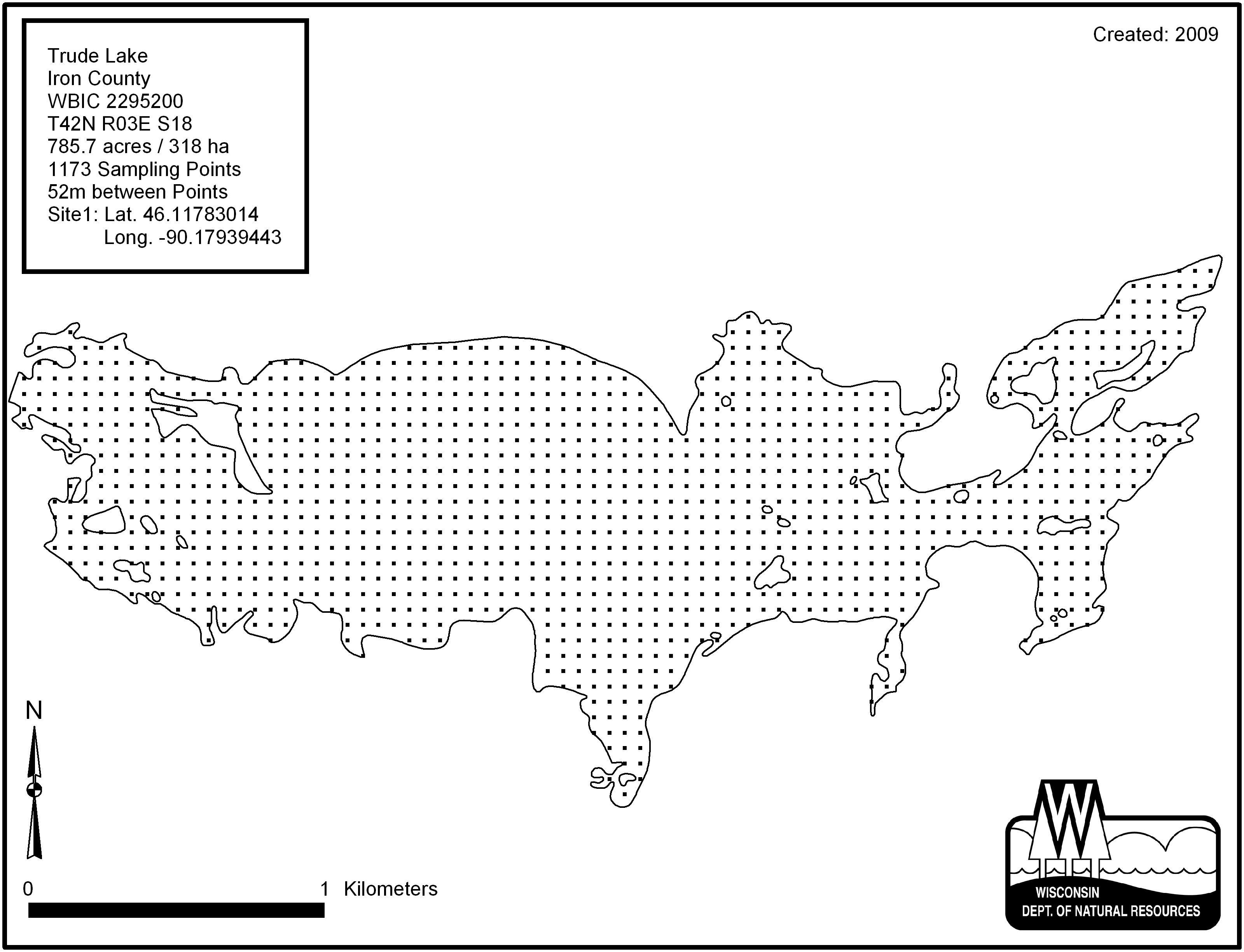 Trude Lake, Iron County - Aquatic Plant Sampling Map (2)(52 mpts)