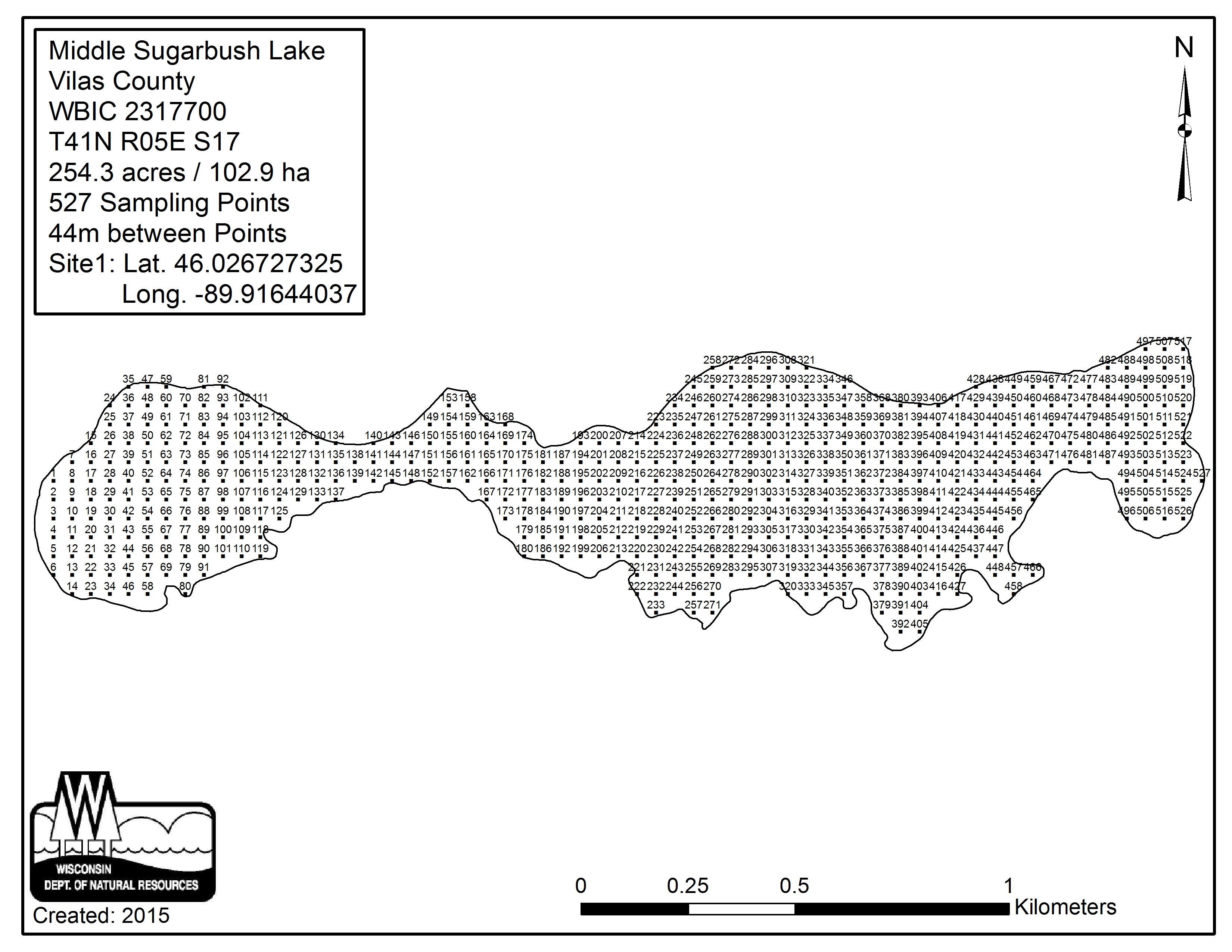 Middle Sugarbush Lake, Vilas County - Aquatic Plant Sampling Map (44 mpts)