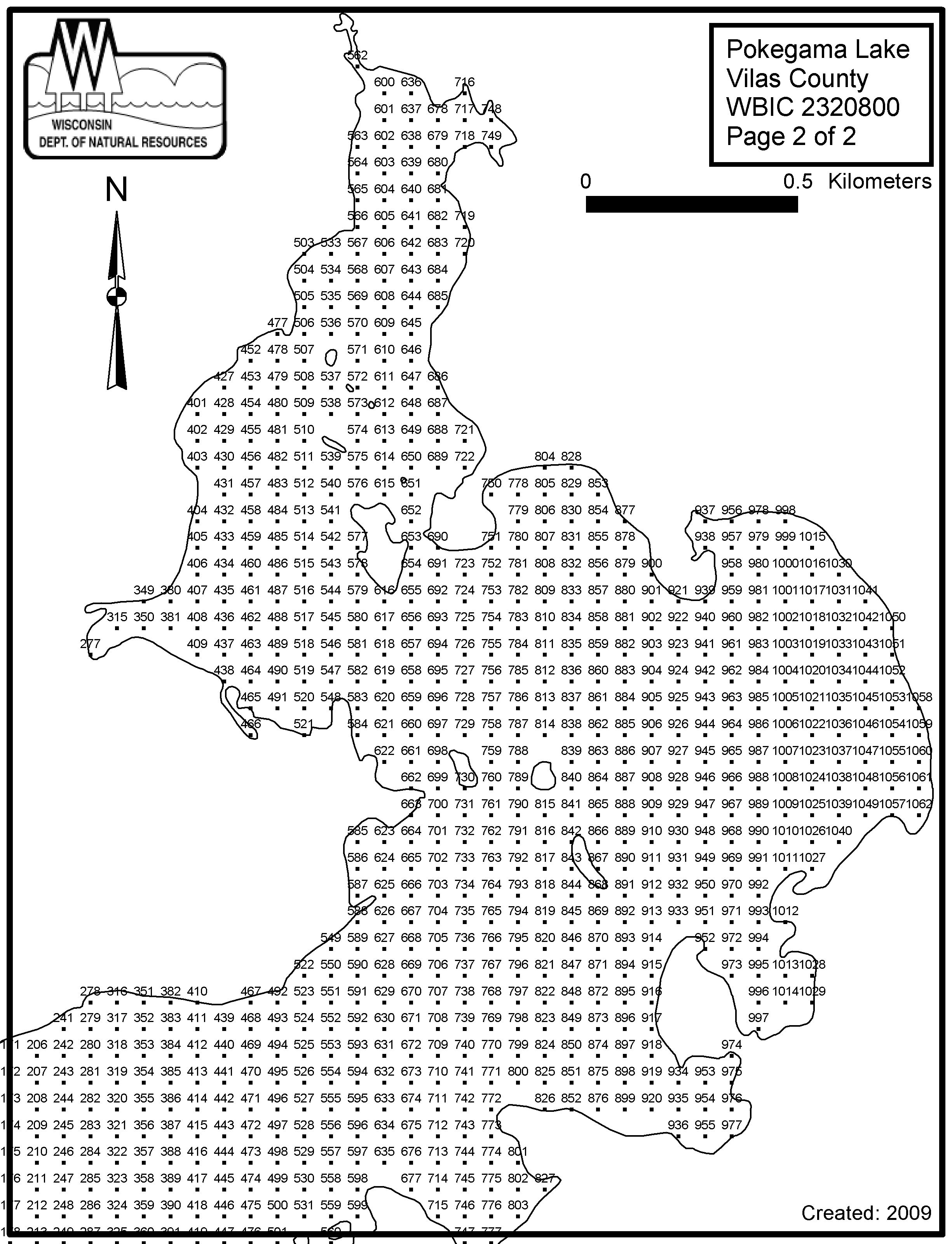 Pokegama Lake, Vilas County - Aquatic Plant Sampling Map (2)(63 mpts)