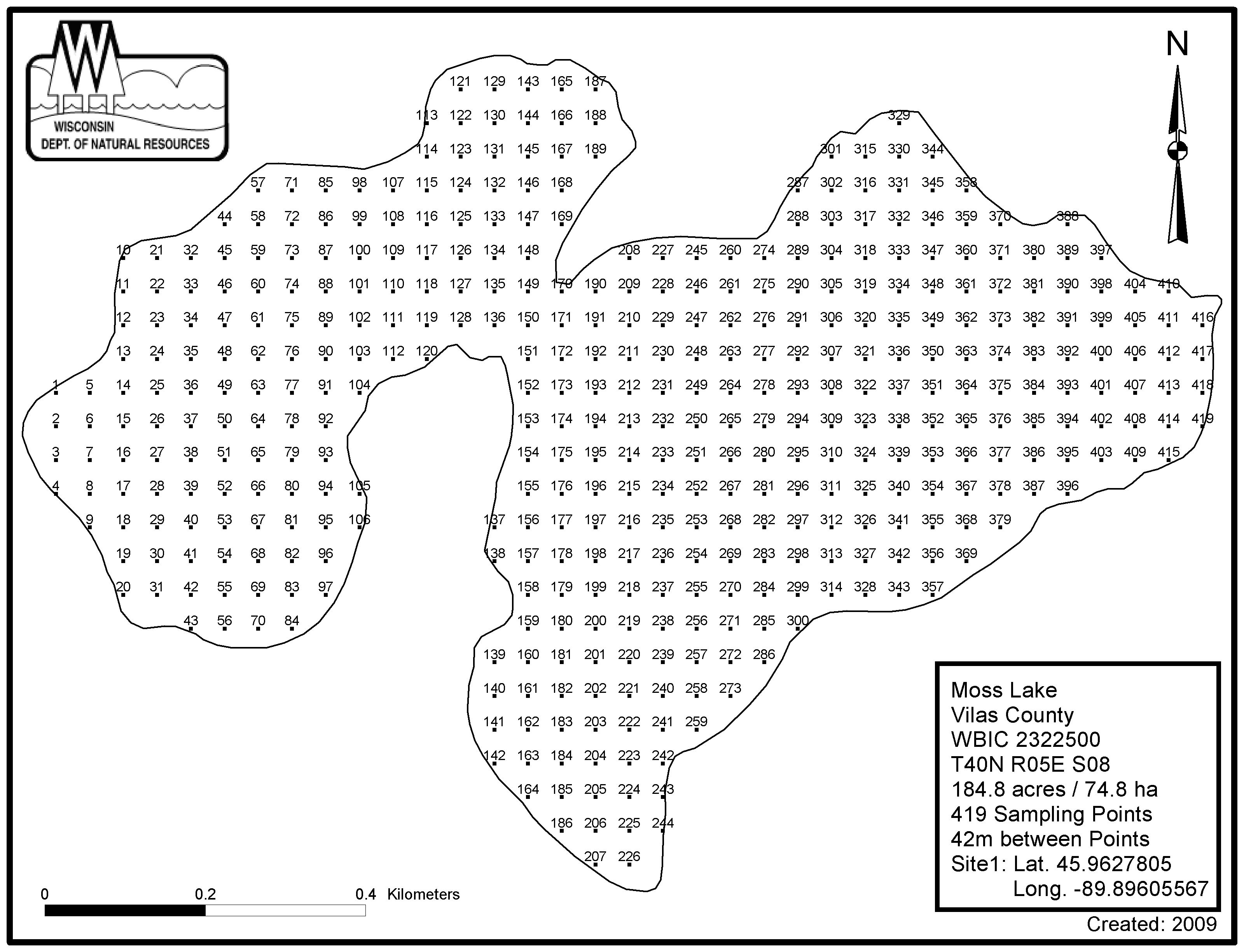 Moss Lake, Vilas County - Aquatic Plant Sampling Map (42 mpts)