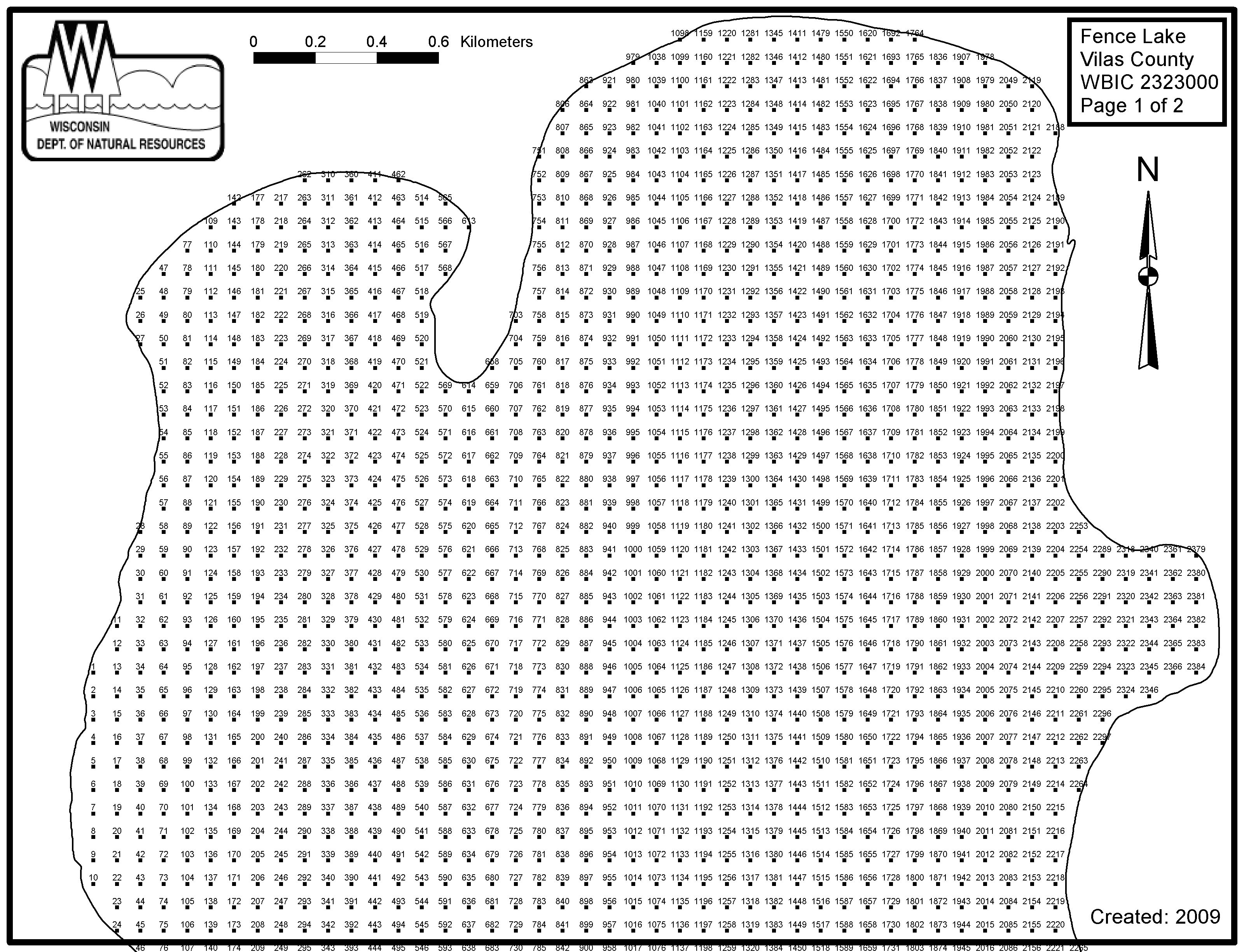 Fence Lake, Vilas County - Aquatic Plant Sampling Map (1)(76 mpts)