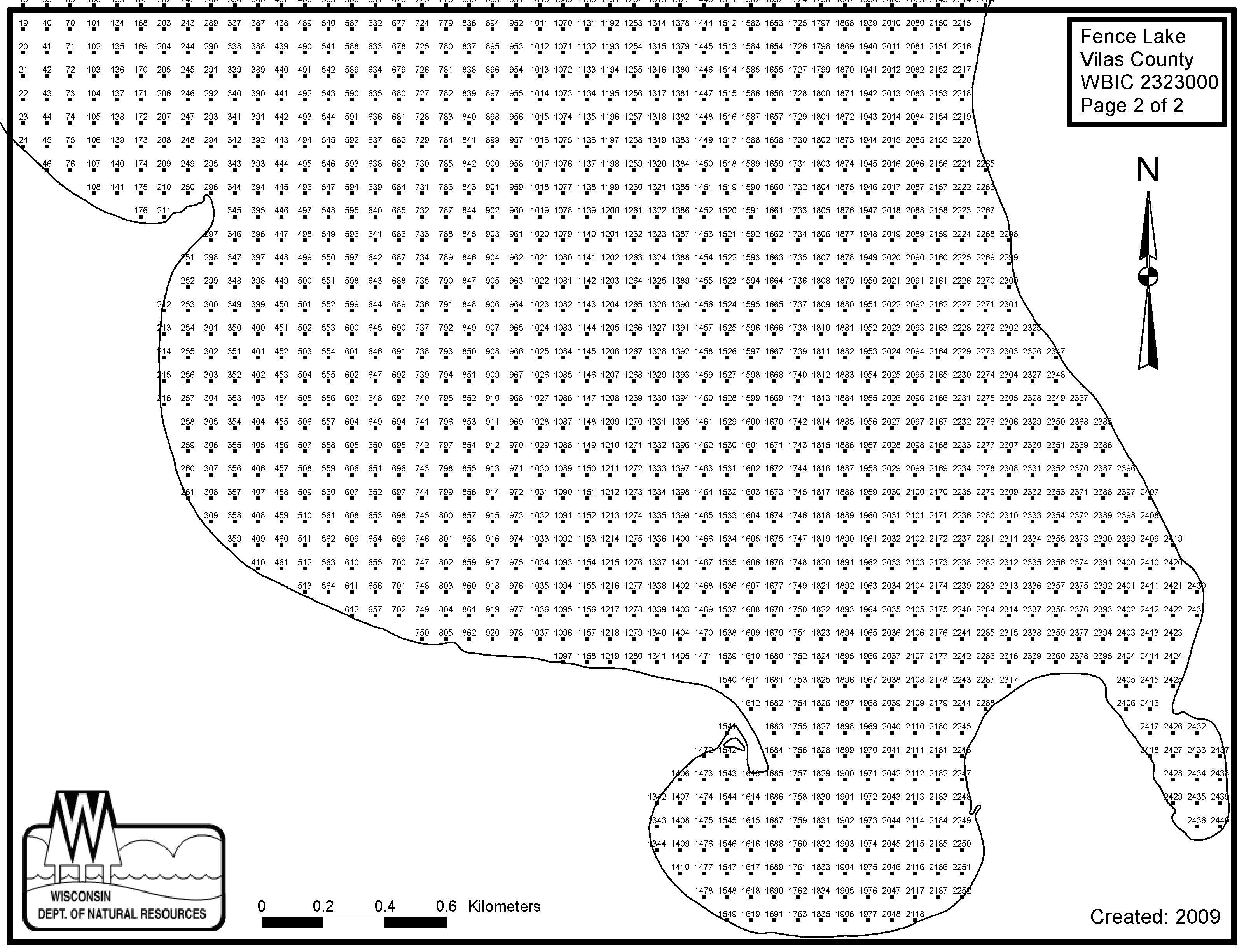 Fence Lake, Vilas County - Aquatic Plant Sampling Map (2)(76 mpts)