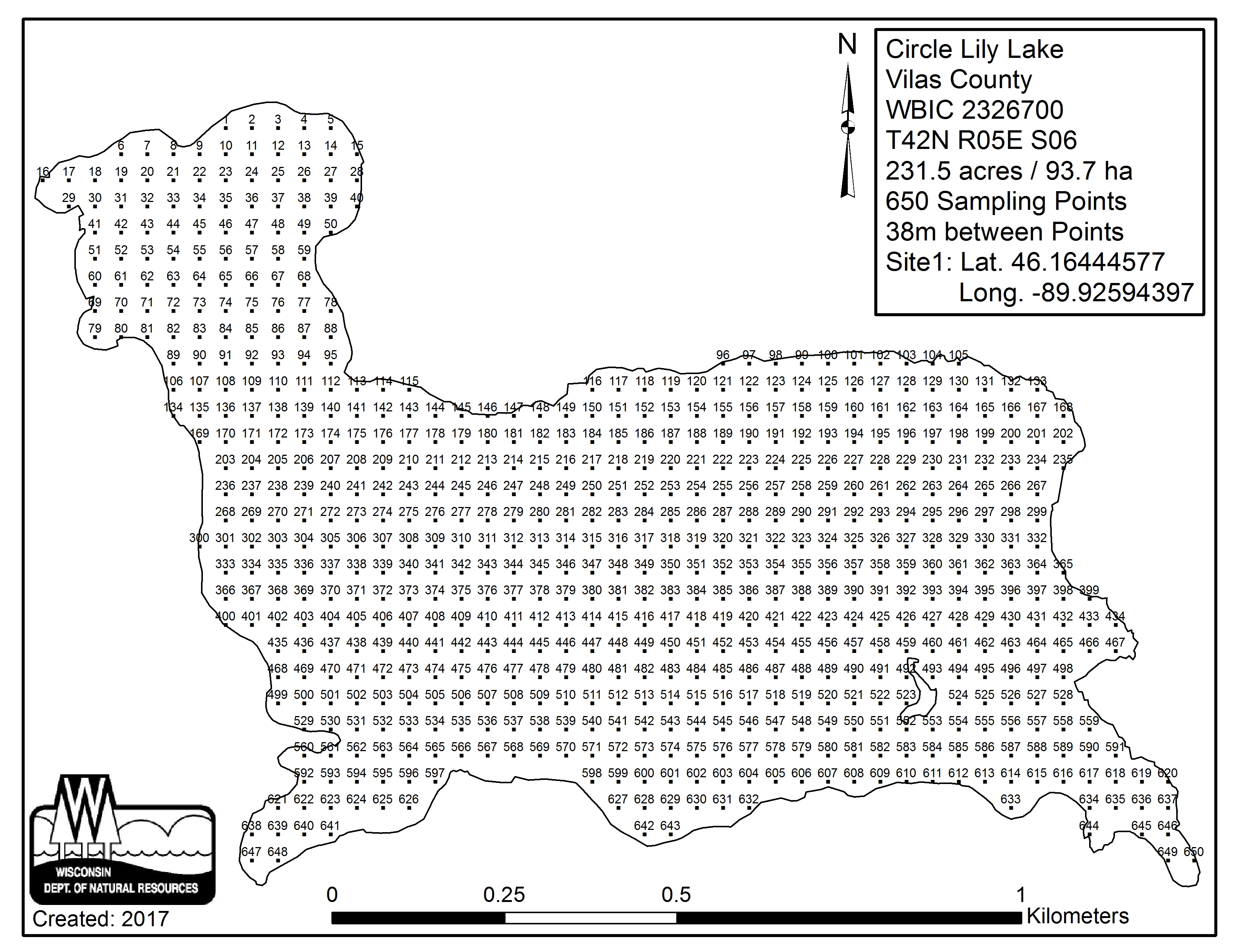 Circle Lily Lake, Vilas County - Aquatic Plant Sampling Map (38 mpts)