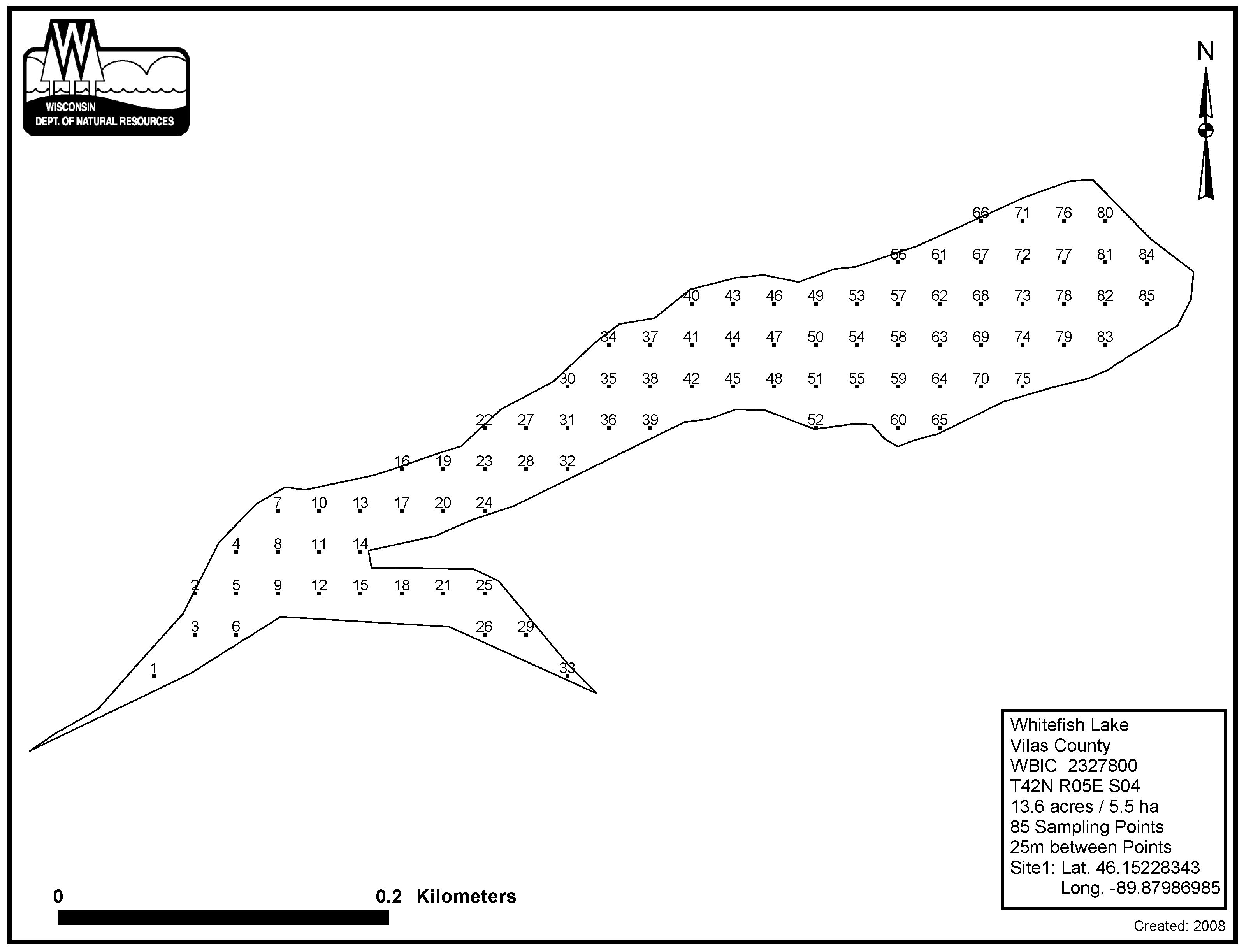 Papoose Creek, Vilas County - Aquatic Plant Sampling Map (25 mpts)