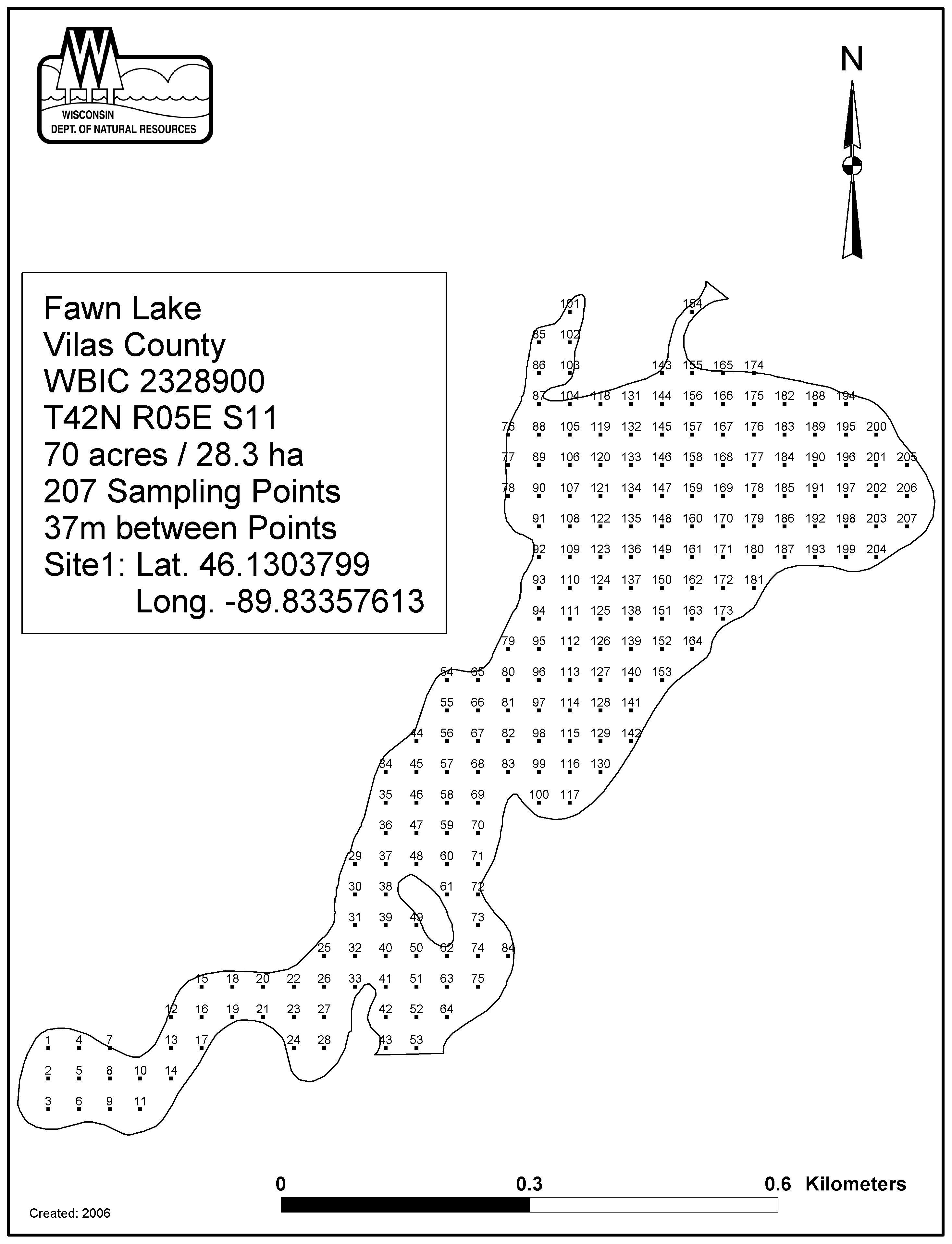 Fawn Lake, Vilas County (2328900) - Aquatic Plant Sampling Map (37 mpts)
