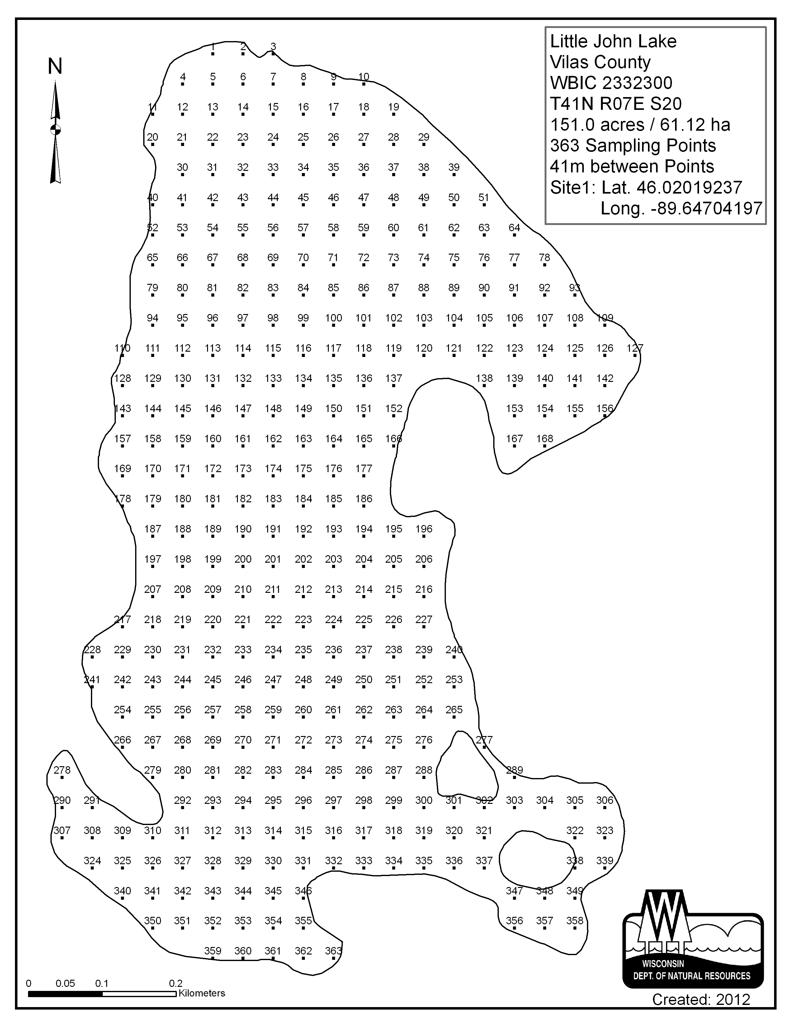 Little John Lake, Vilas County - Aquatic Plant Sampling Map (41 mpts)