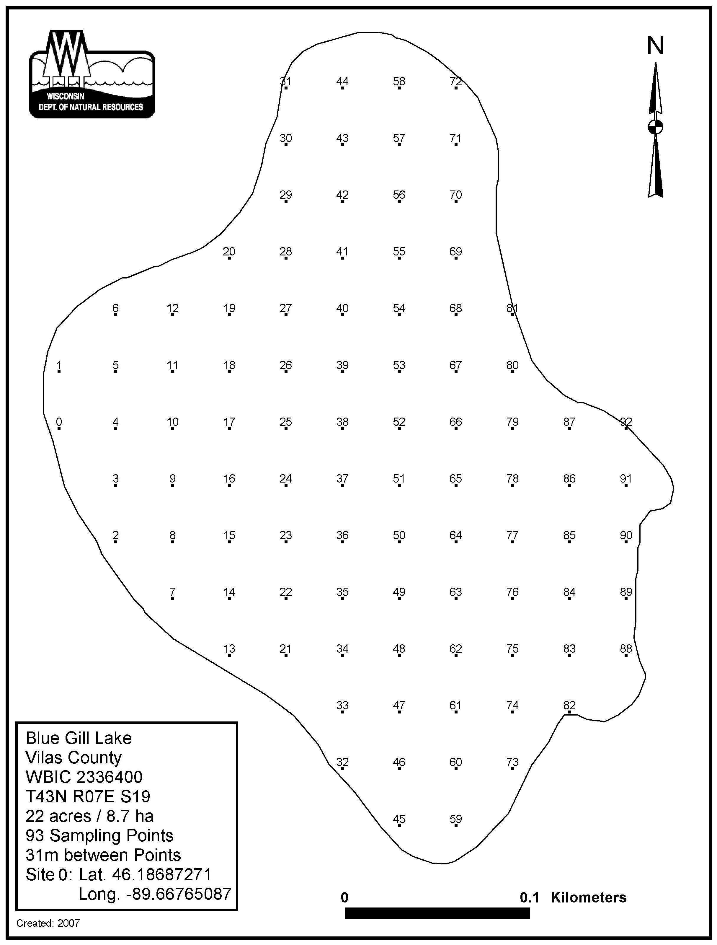 Blue Gill Lake, Vilas County - Aquatic Plant Sampling Map (31 mpts)