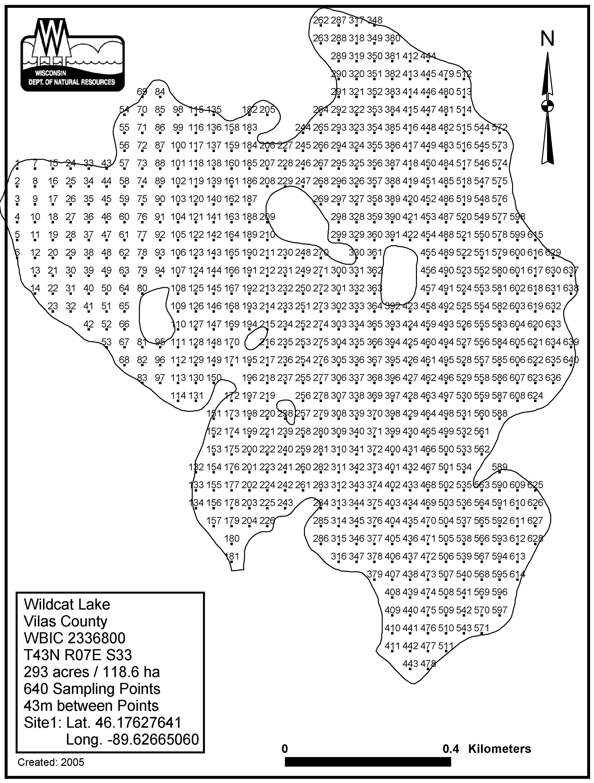 Wildcat Lake, Vilas County - Aquatic Plant Sampling Map (43 mpts)