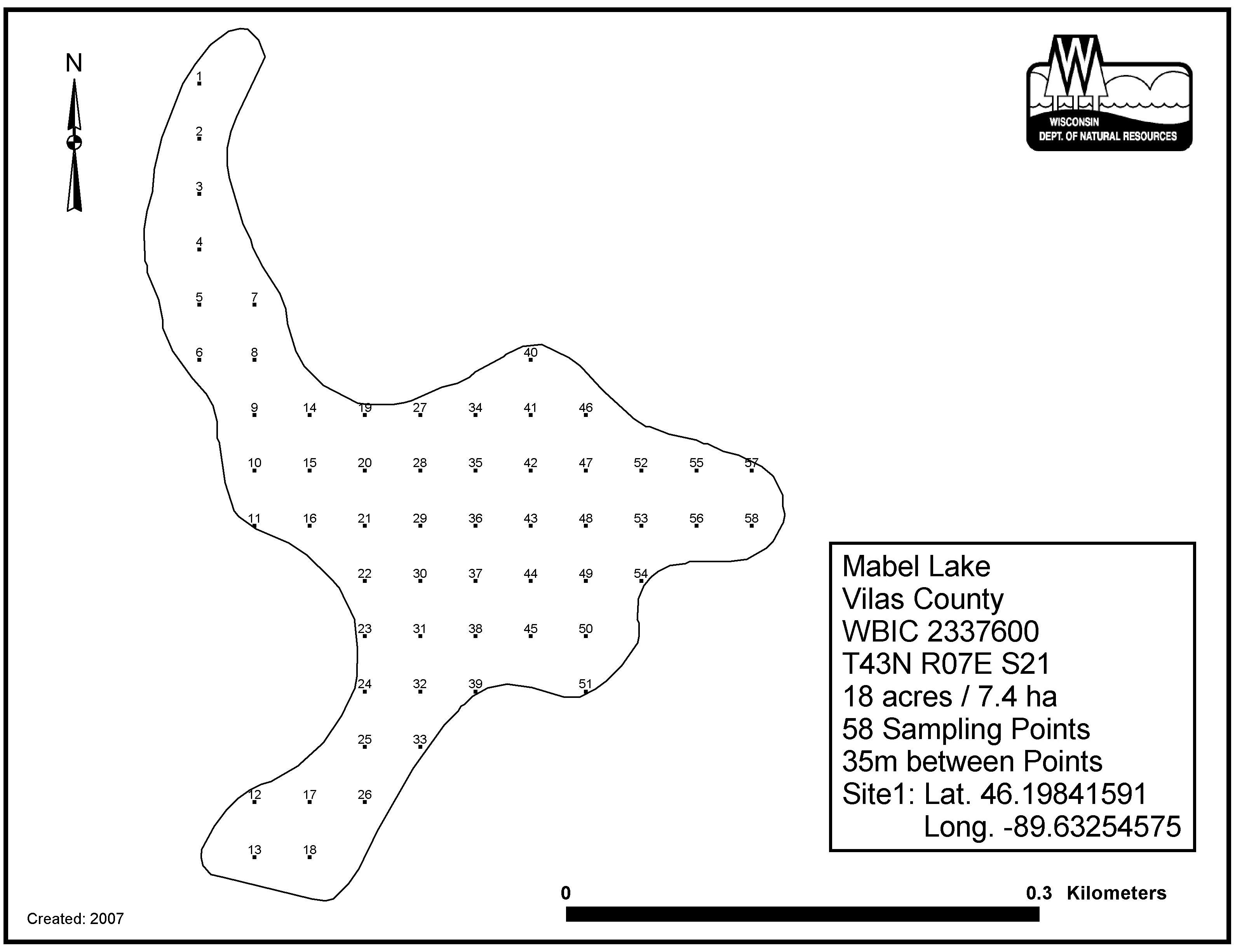 Mabel Lake, Vilas County - Aquatic Plant Sampling Map (35 mpts)