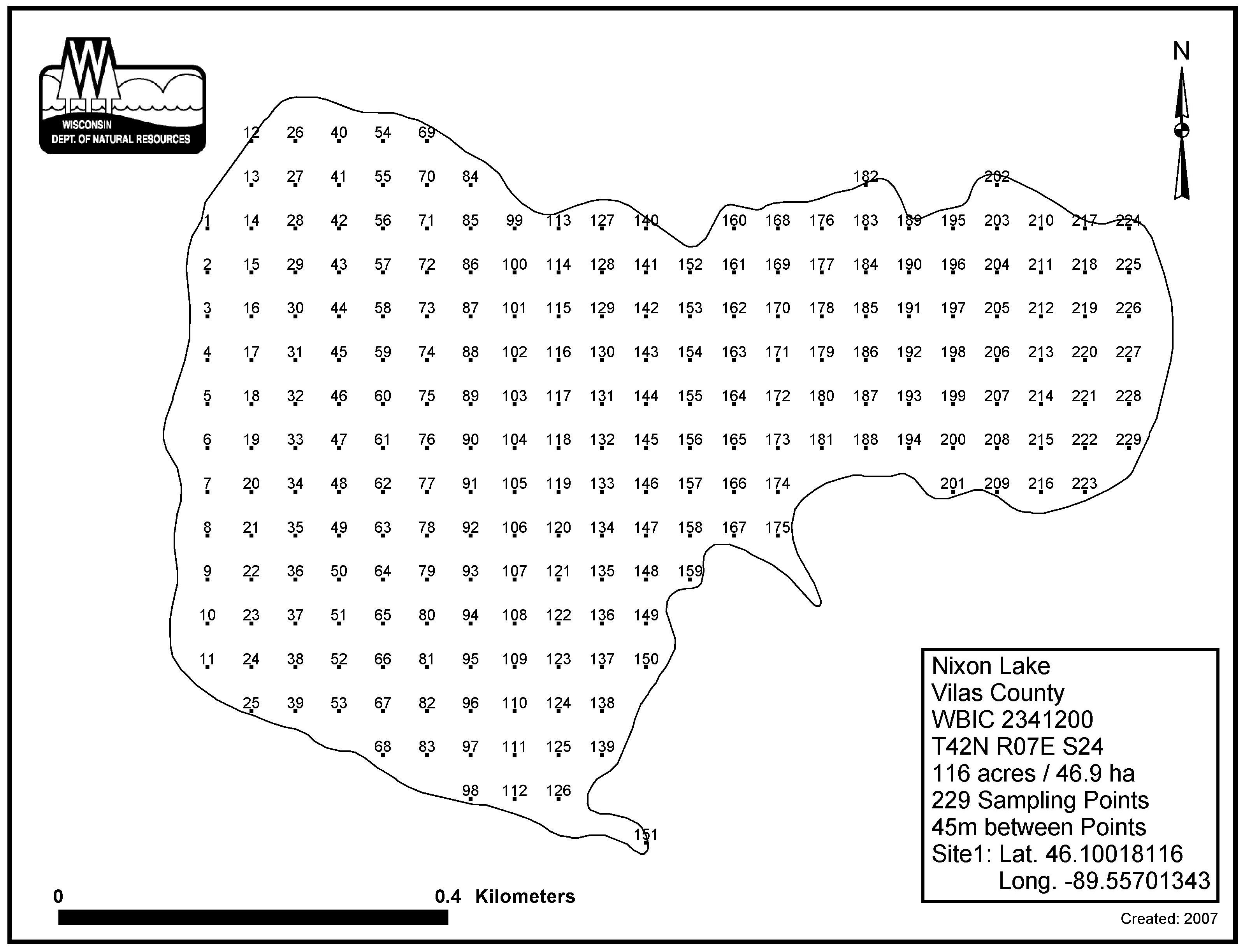 Nixon Lake, Vilas County - Aquatic Plant Sampling Map (45 mpts)