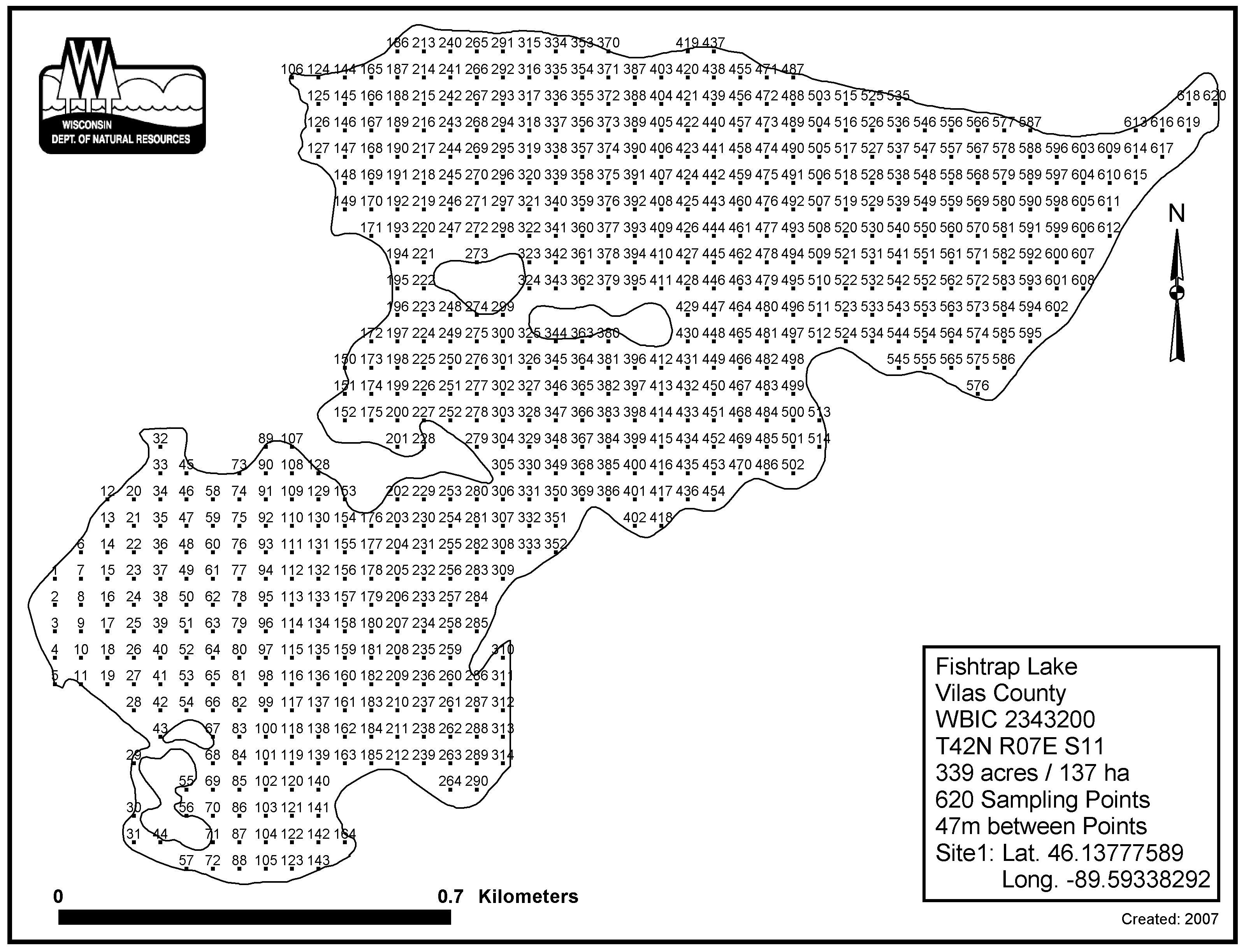 Fishtrap Lake, Vilas County - Aquatic Plant Sampling Map (47 mpts)