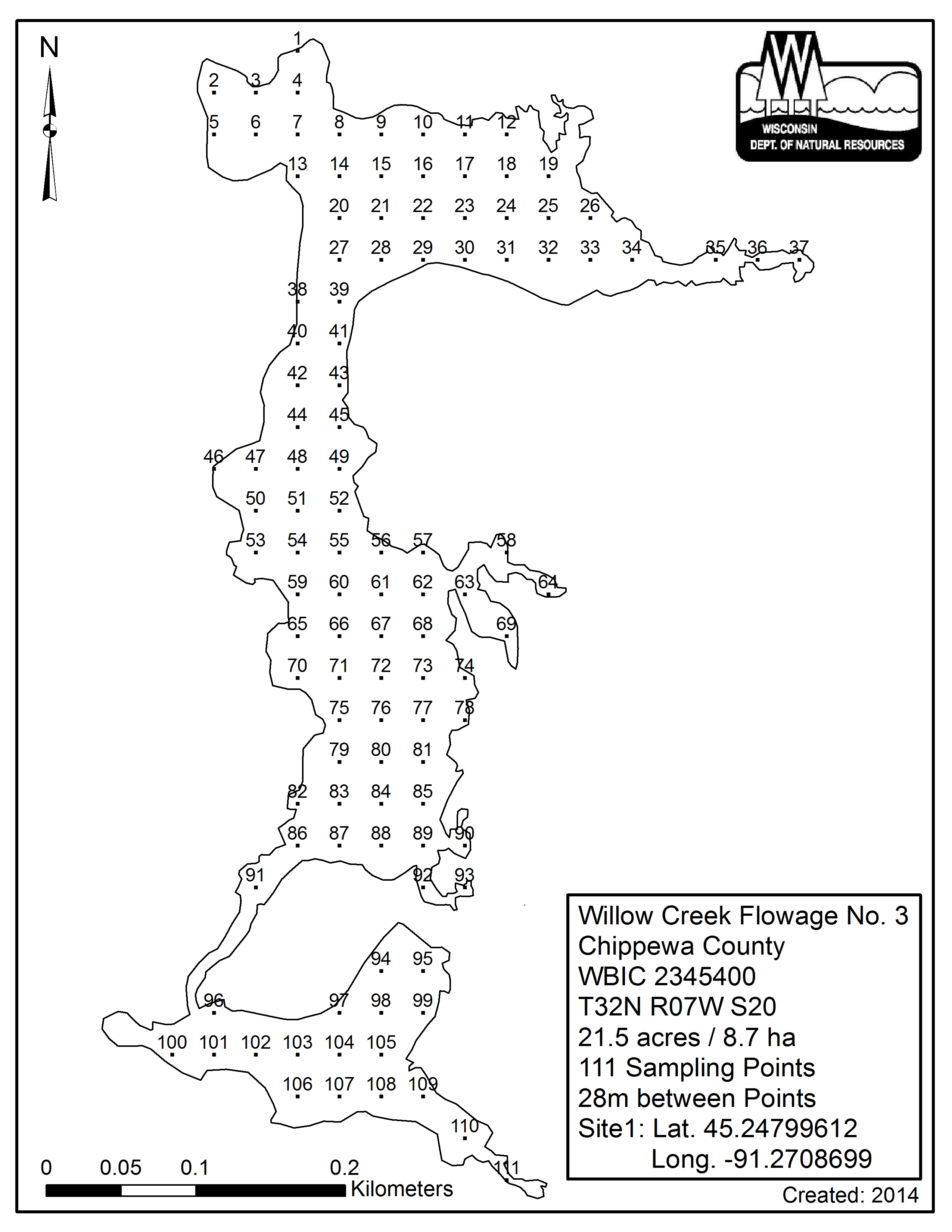 Willow Creek Flowage No. 3, Chippewa County - Aquatic Plant Sampling Map (28 mpts)
