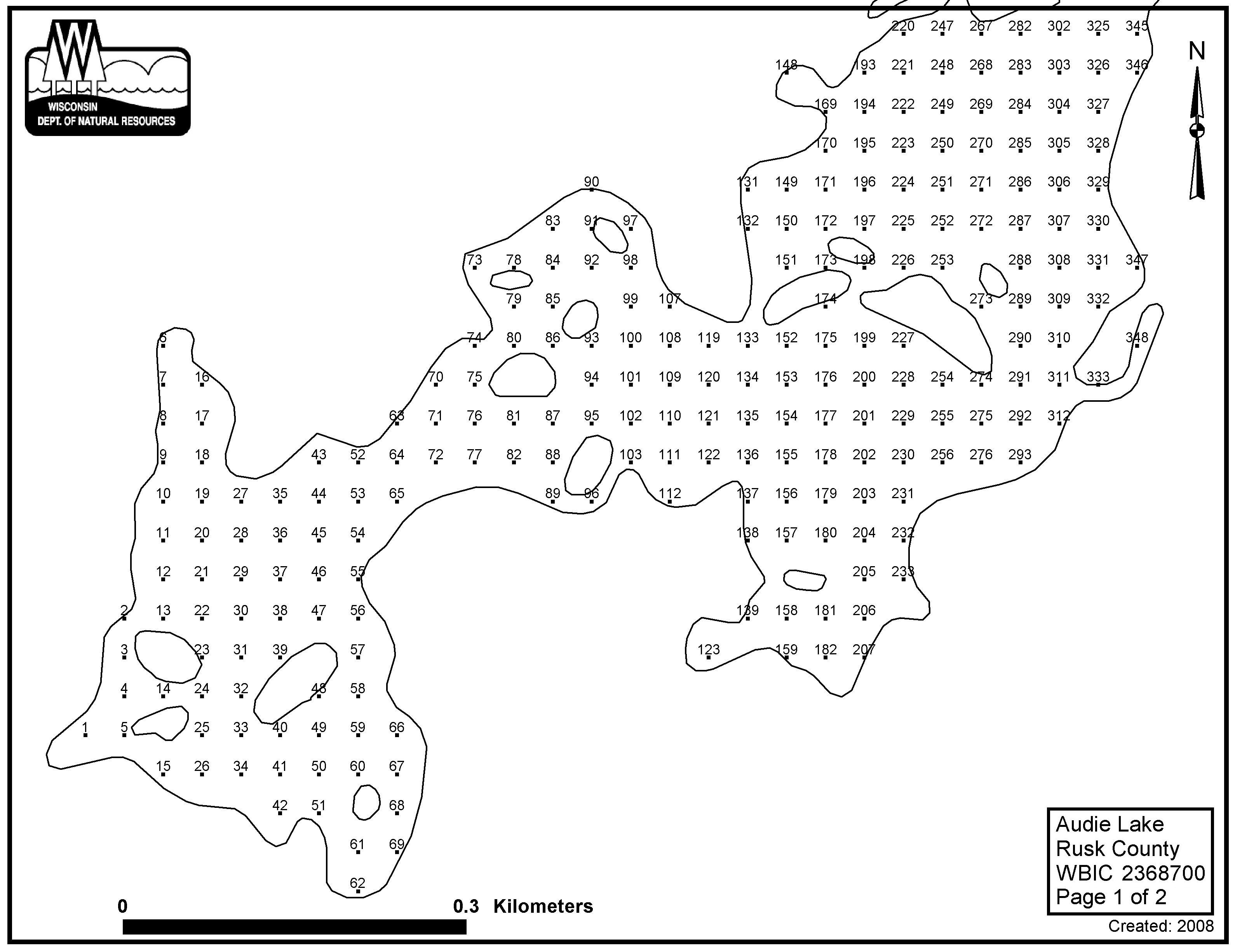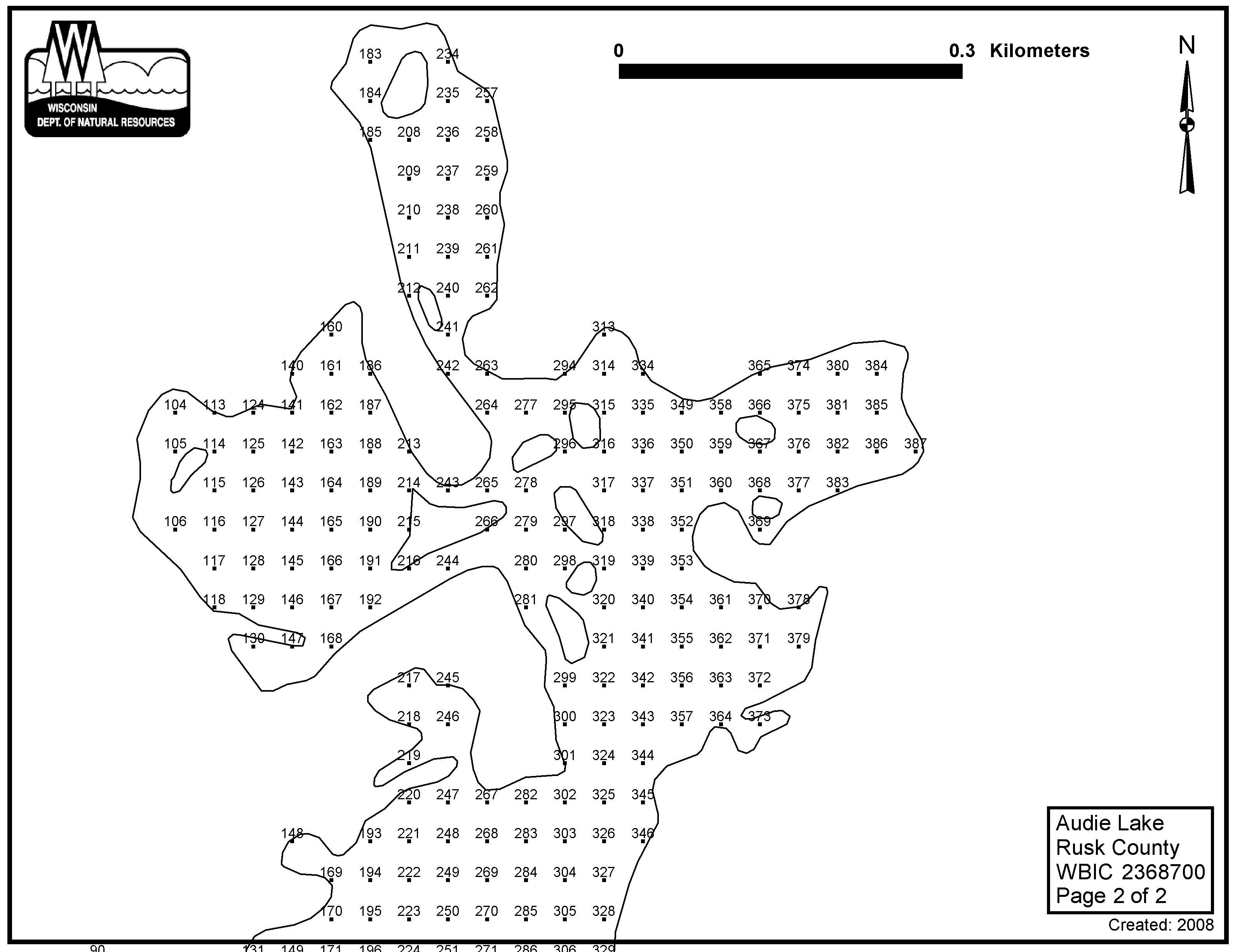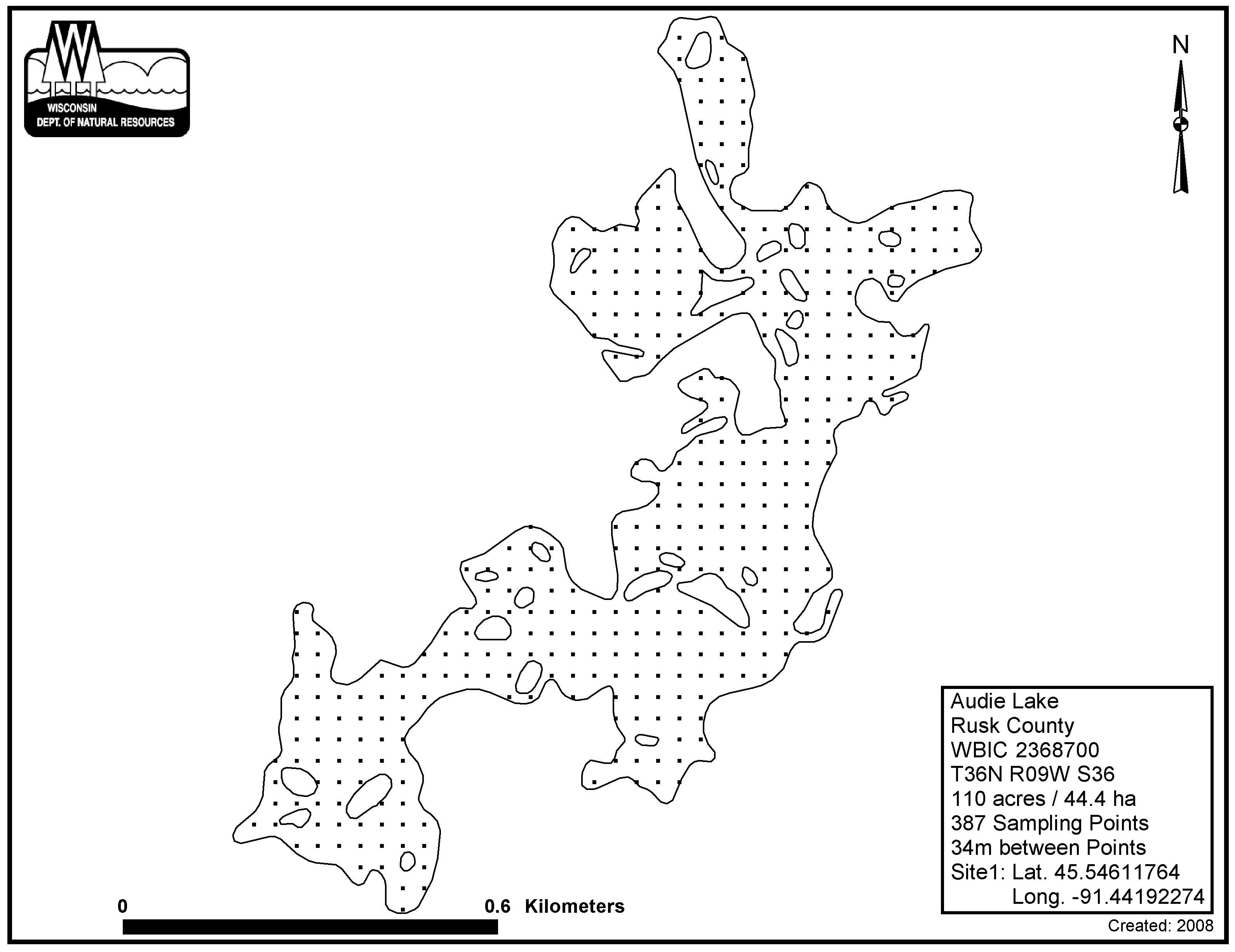 Audie Lake, Rusk County - Aquatic Plant Sampling Map (2)(34 mpts)