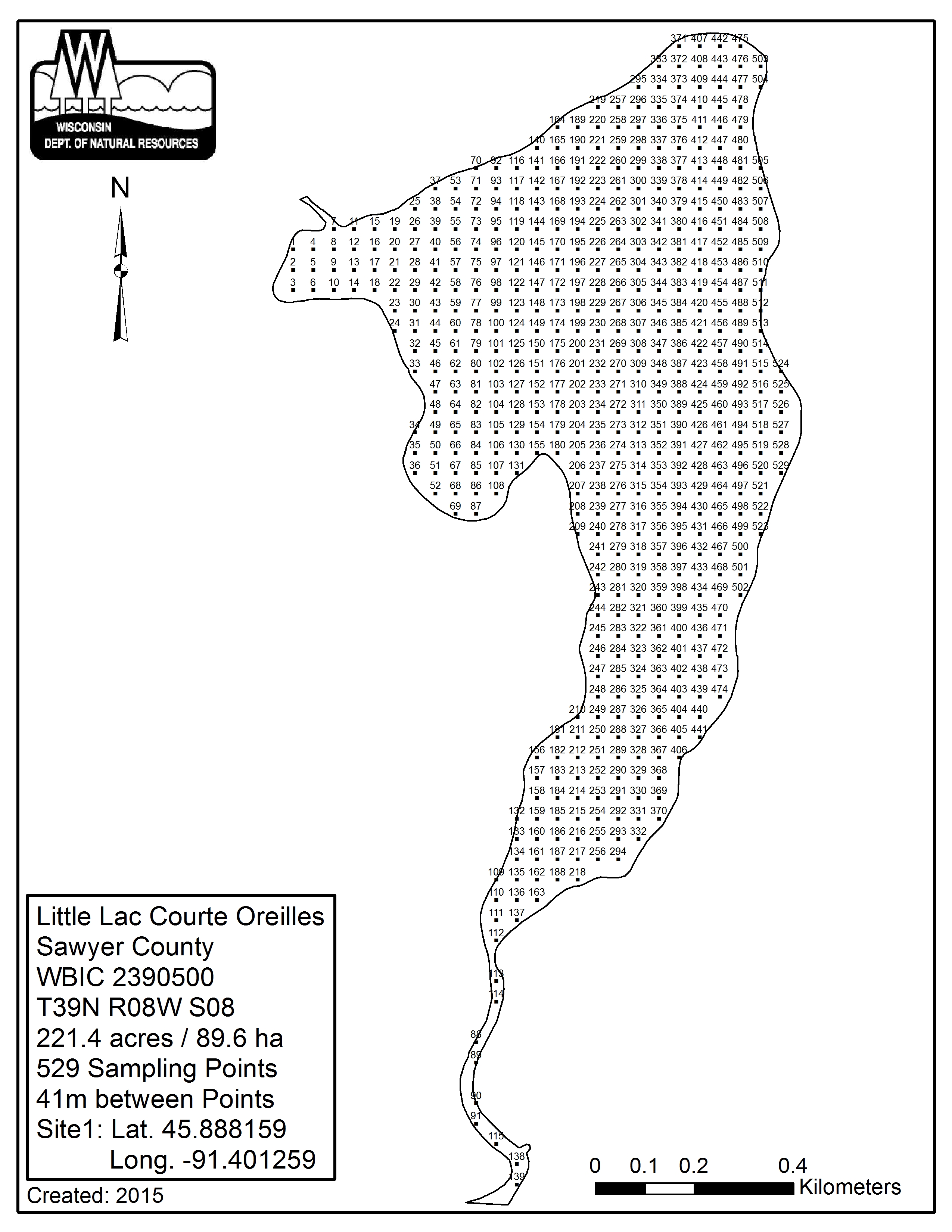 Little Lac Courte Oreilles, Sawyer County - Aquatic Plant Sampling Map (41 mpts)