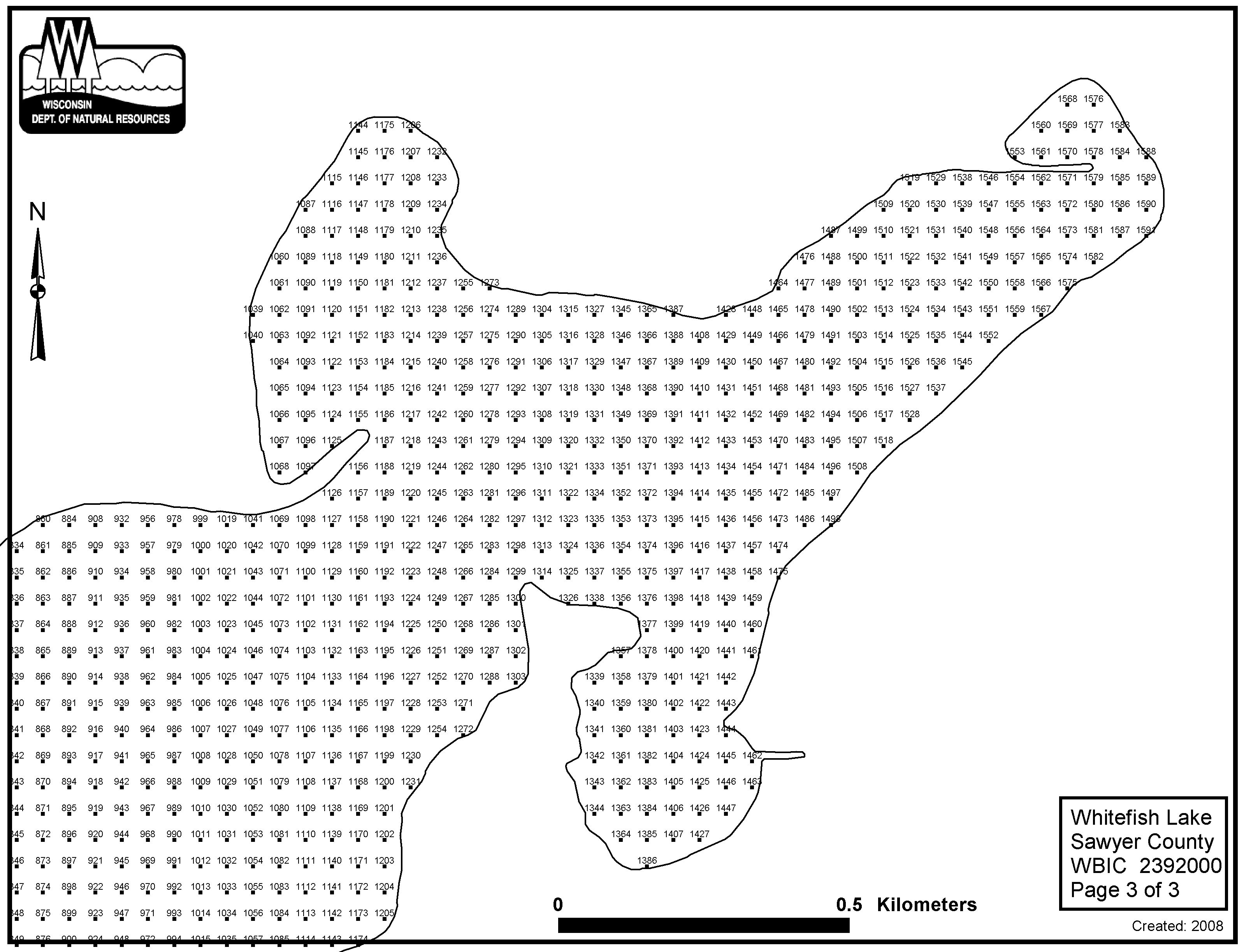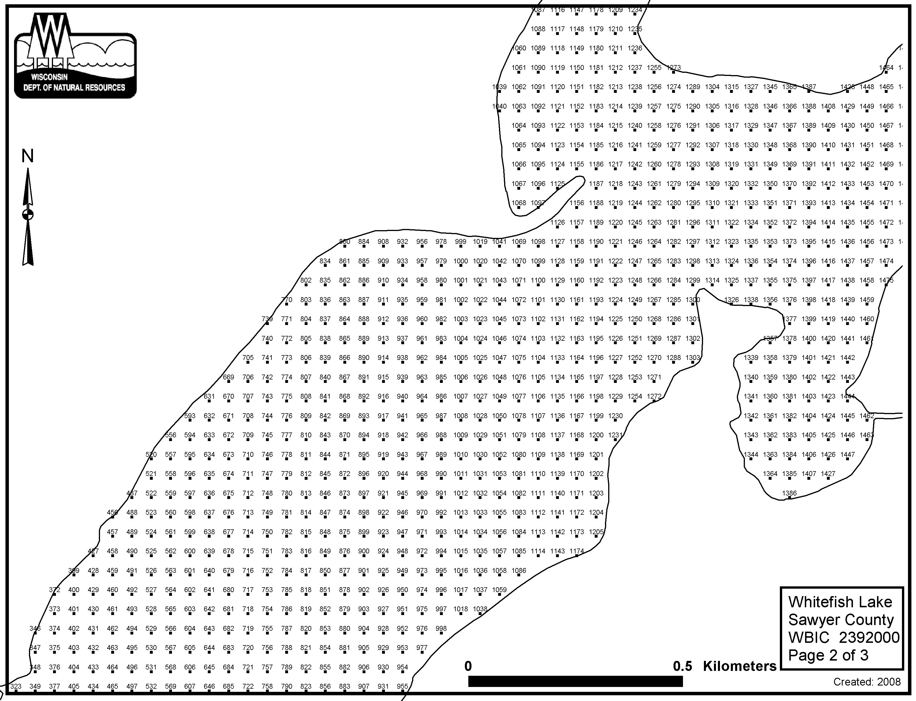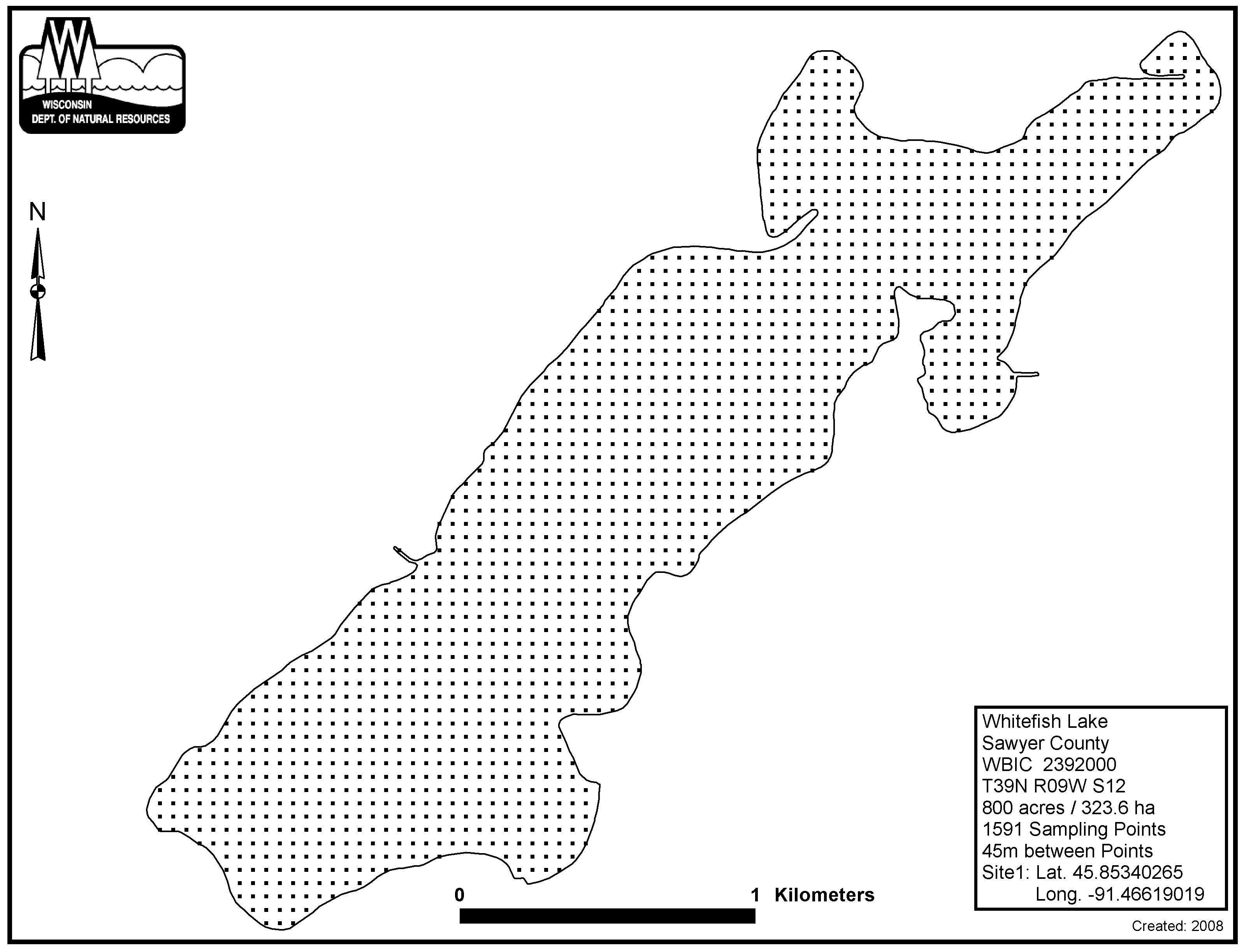 Whitefish Lake, Sawyer County - Aquatic Plant Sampling Map (3)(45 mpts)