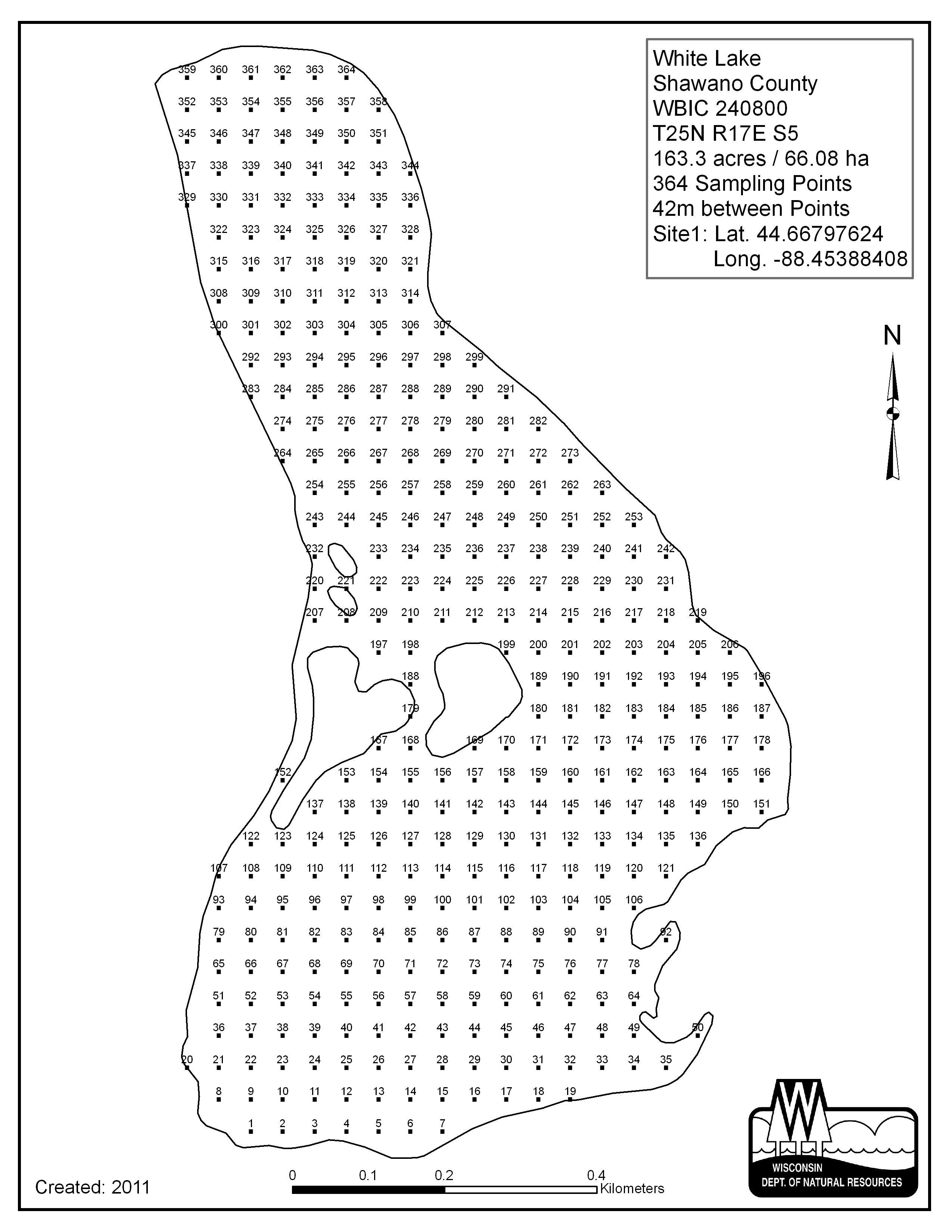 White Lake, Shawano County - Aquatic Plant Sampling Map (42 mpts)