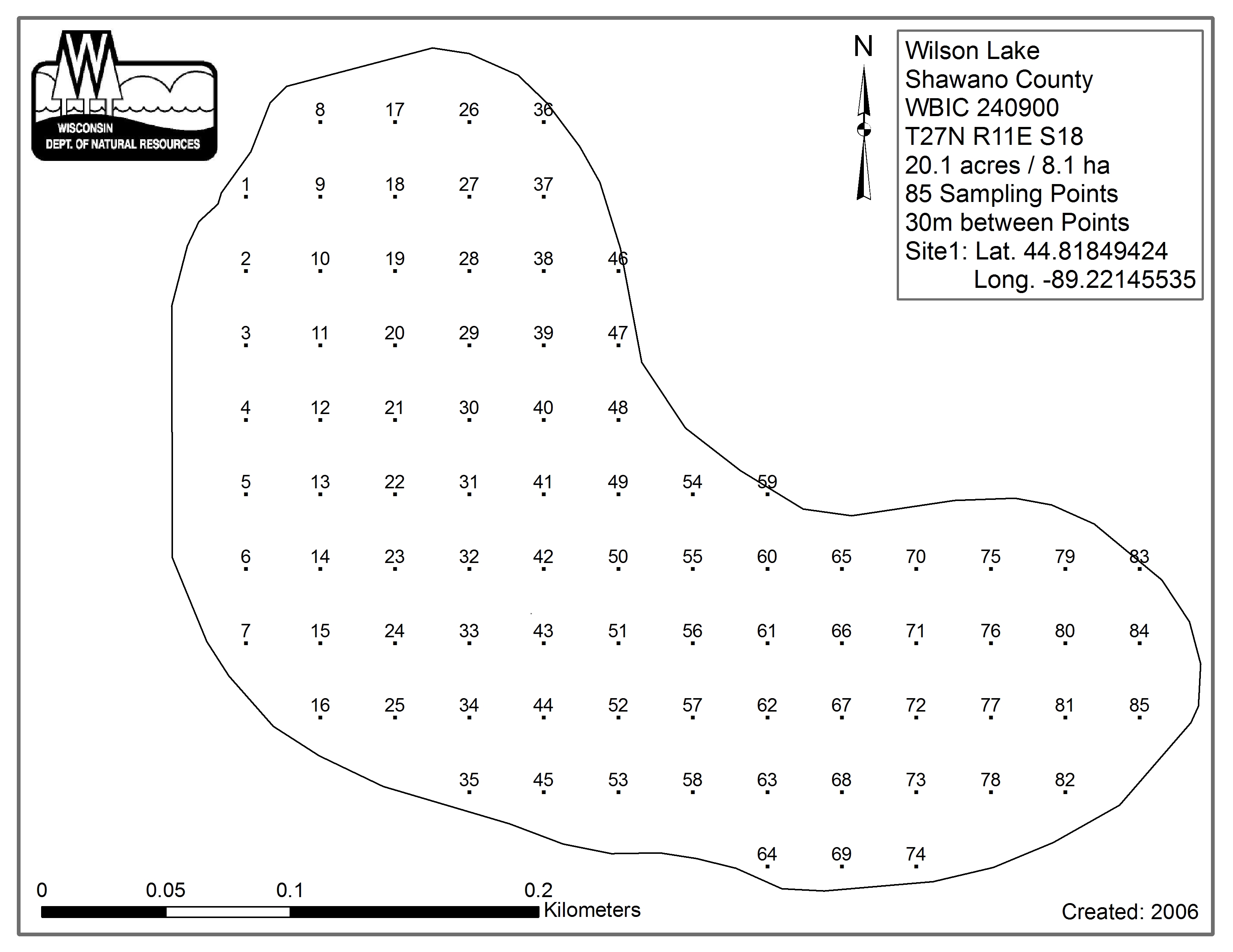 Wilson Lake, Shawano County - Aquatic Plant Sampling Map (30 mpts)