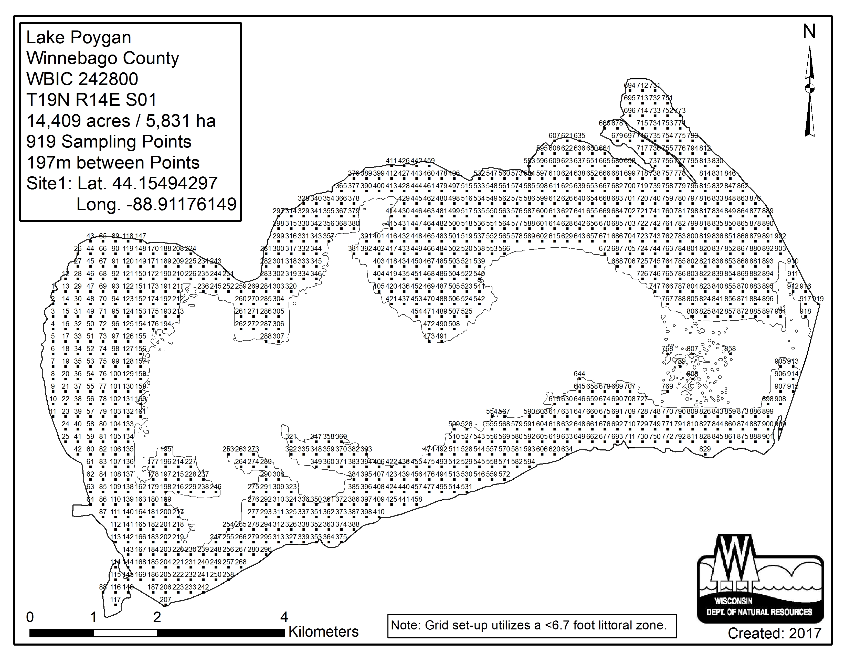 Lake Poygan, Winnebago County - Aquatic Plant Sampling Map (2)(197 mpts)