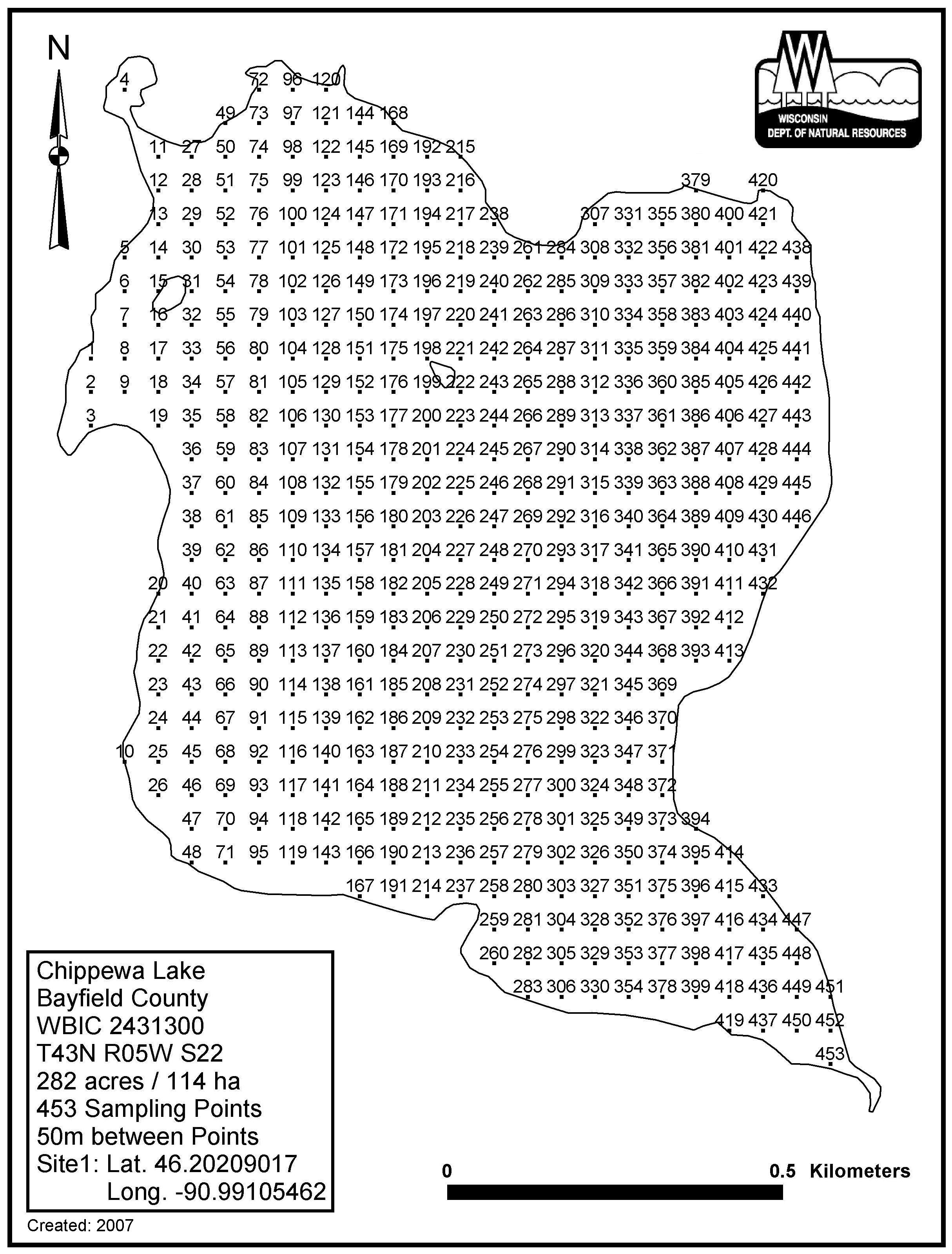 Chippewa Lake, Bayfield County - Aquatic Plant Sampling Map (50 mpts)