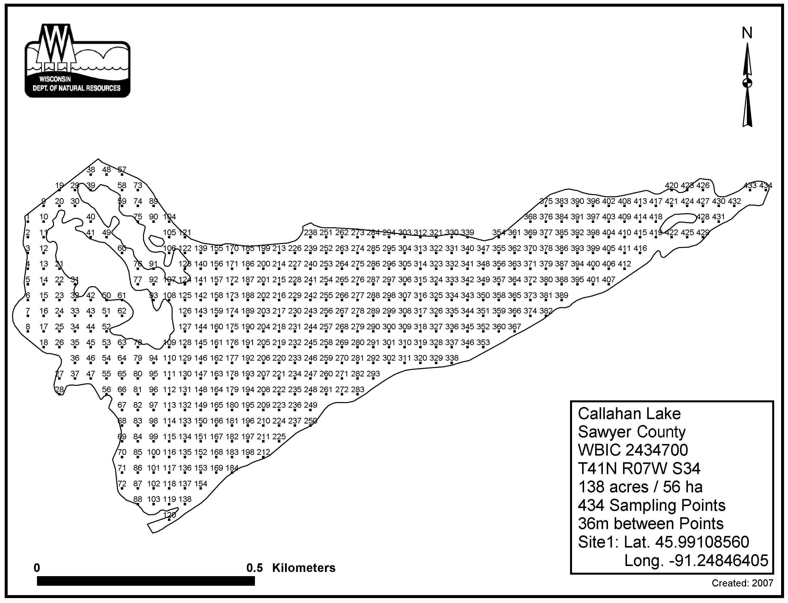 Callahan Lake, Sawyer County - Aquatic Plant Sampling Map (36 mpts)