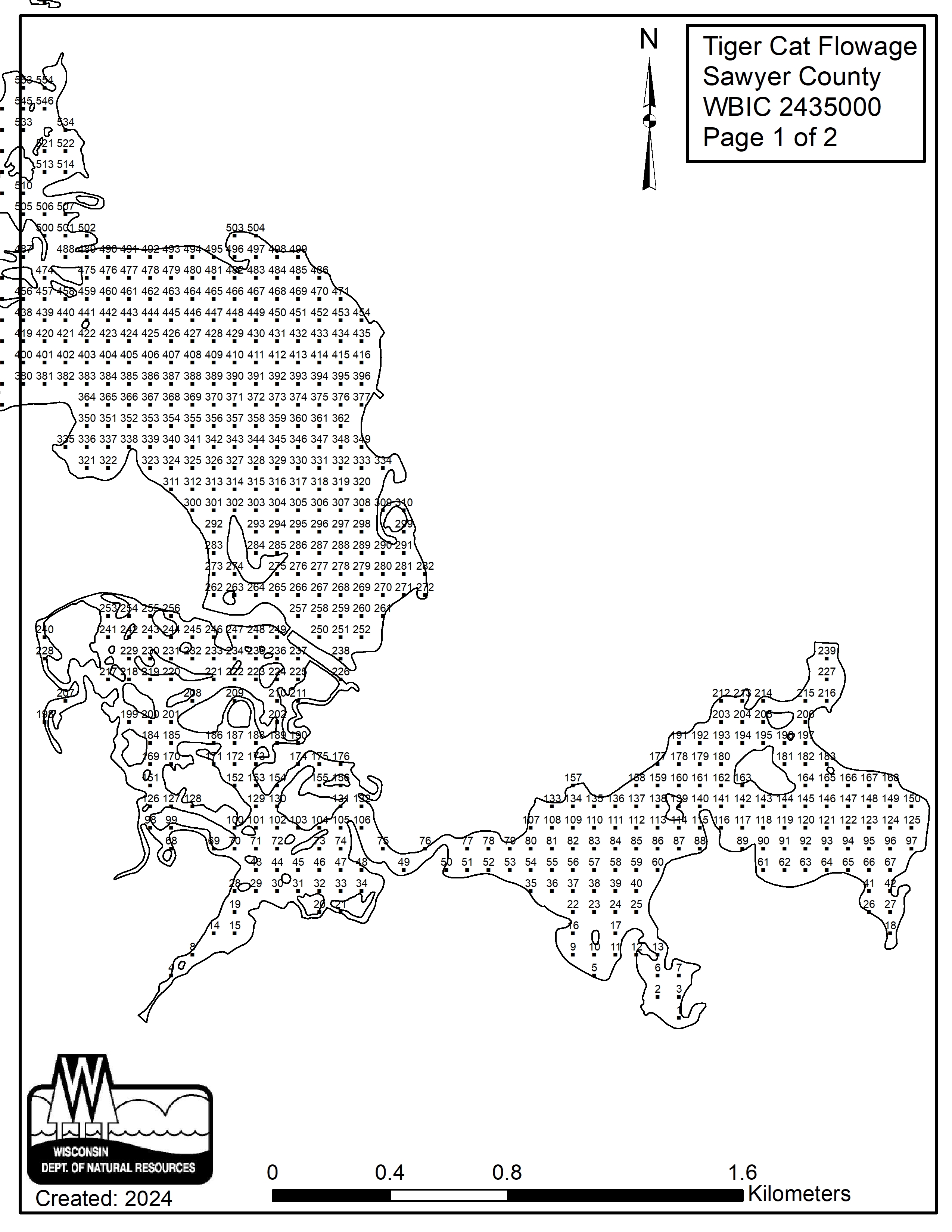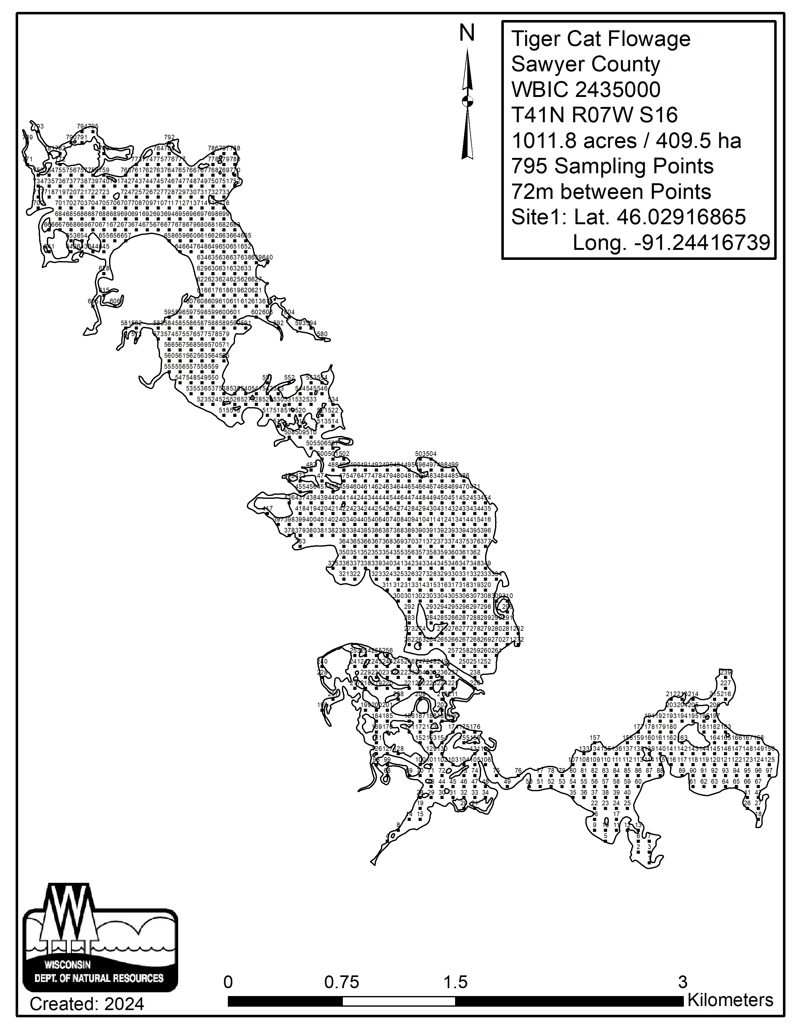 Tiger Cat Flowage, Sawyer County - Aquatic Plant Sampling Map (1)(72 mpts)