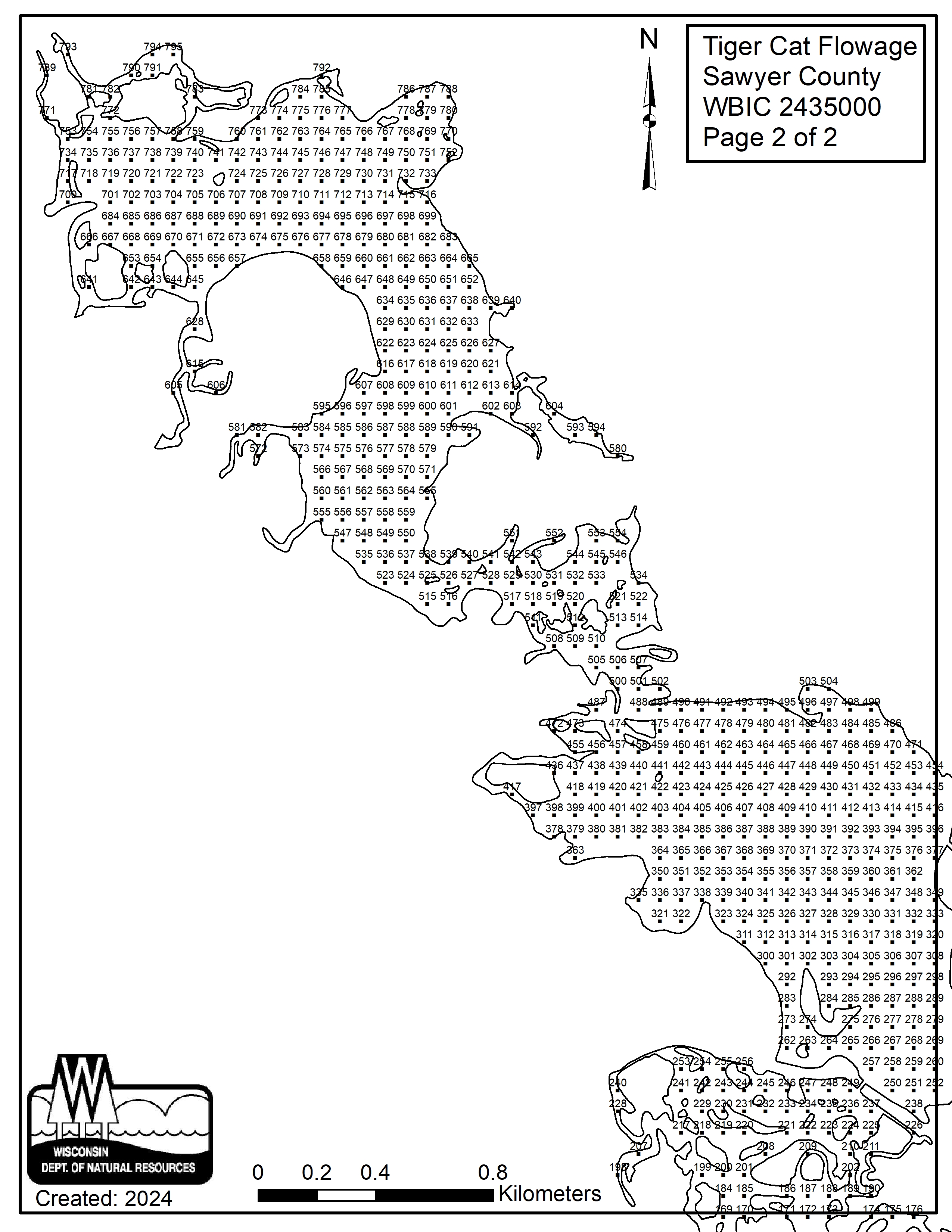 Tiger Cat Flowage, Sawyer County - Aquatic Plant Sampling Map (2)(72 mpts)