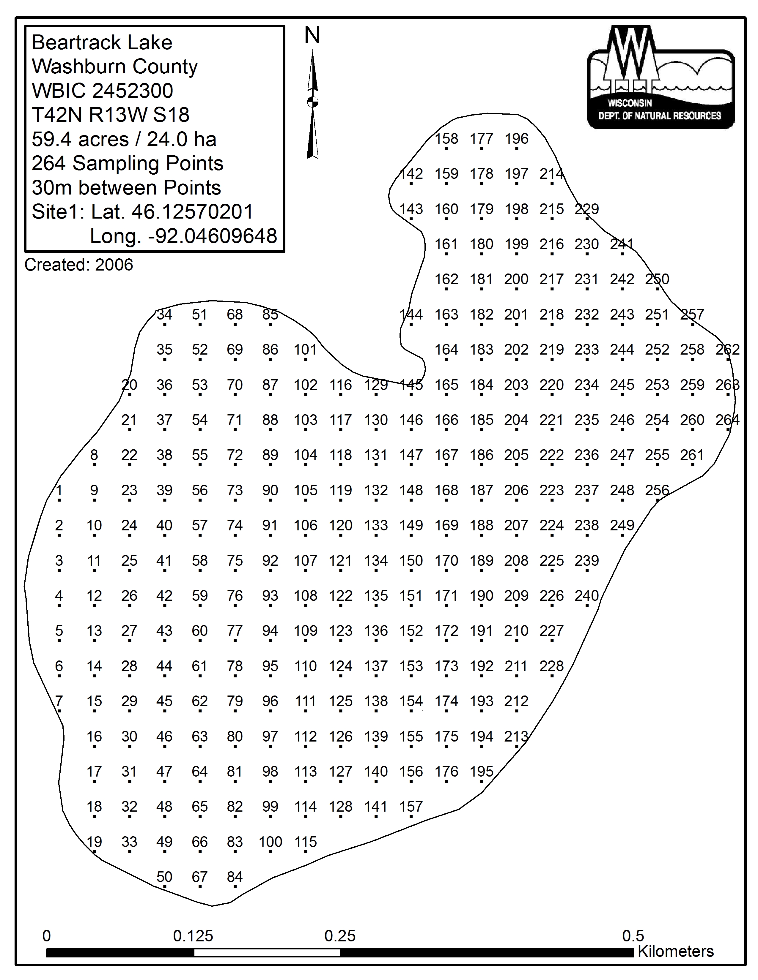 Beartrack Lake, Washburn County - Aquatic Plant Sampling Map (30 mpts)