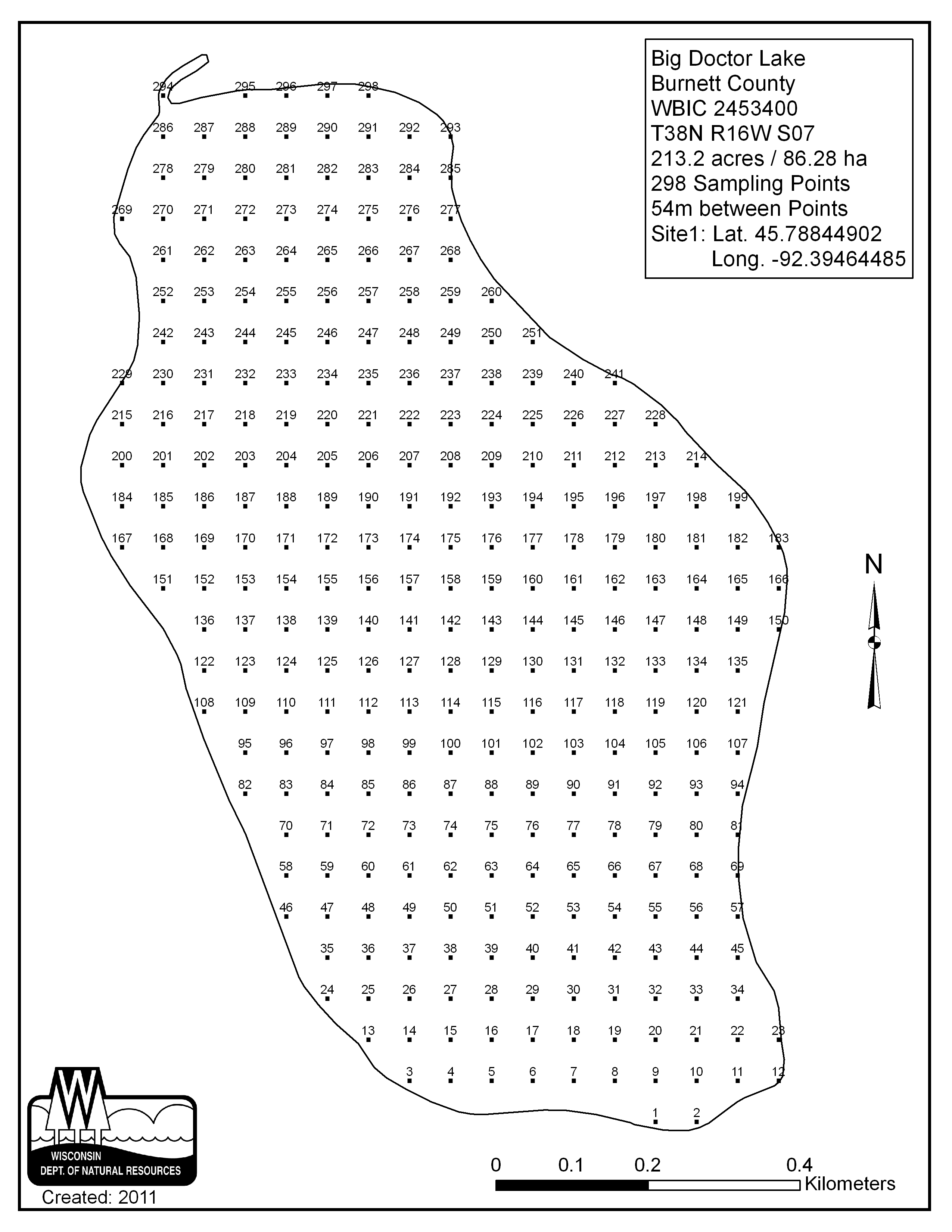Big Doctor Lake, Burnett County - Aquatic Plant Sampling Map (54 mpts)