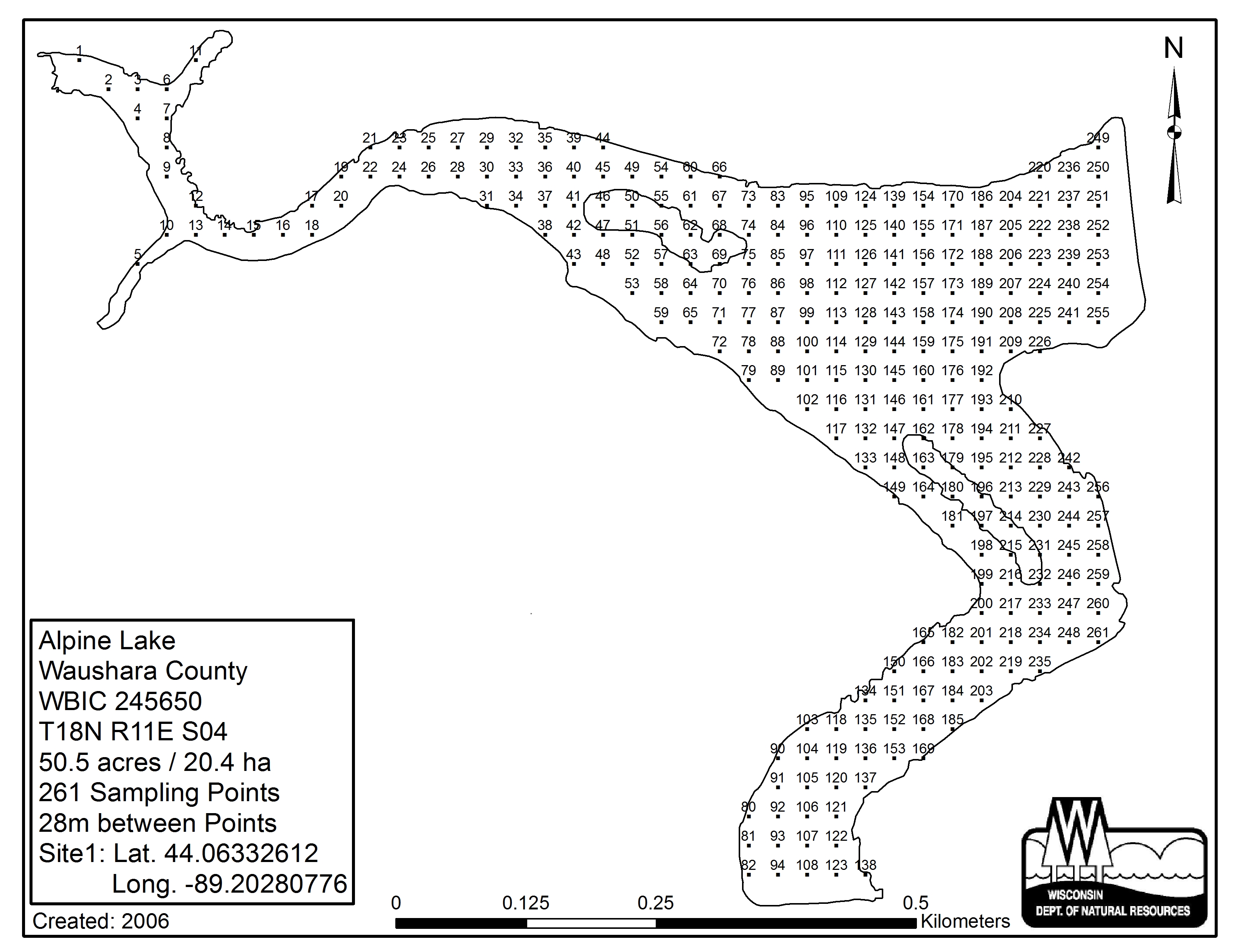Alpine Lake, Waushara County - Aquatic Plant Sampling Map (28 mpts)