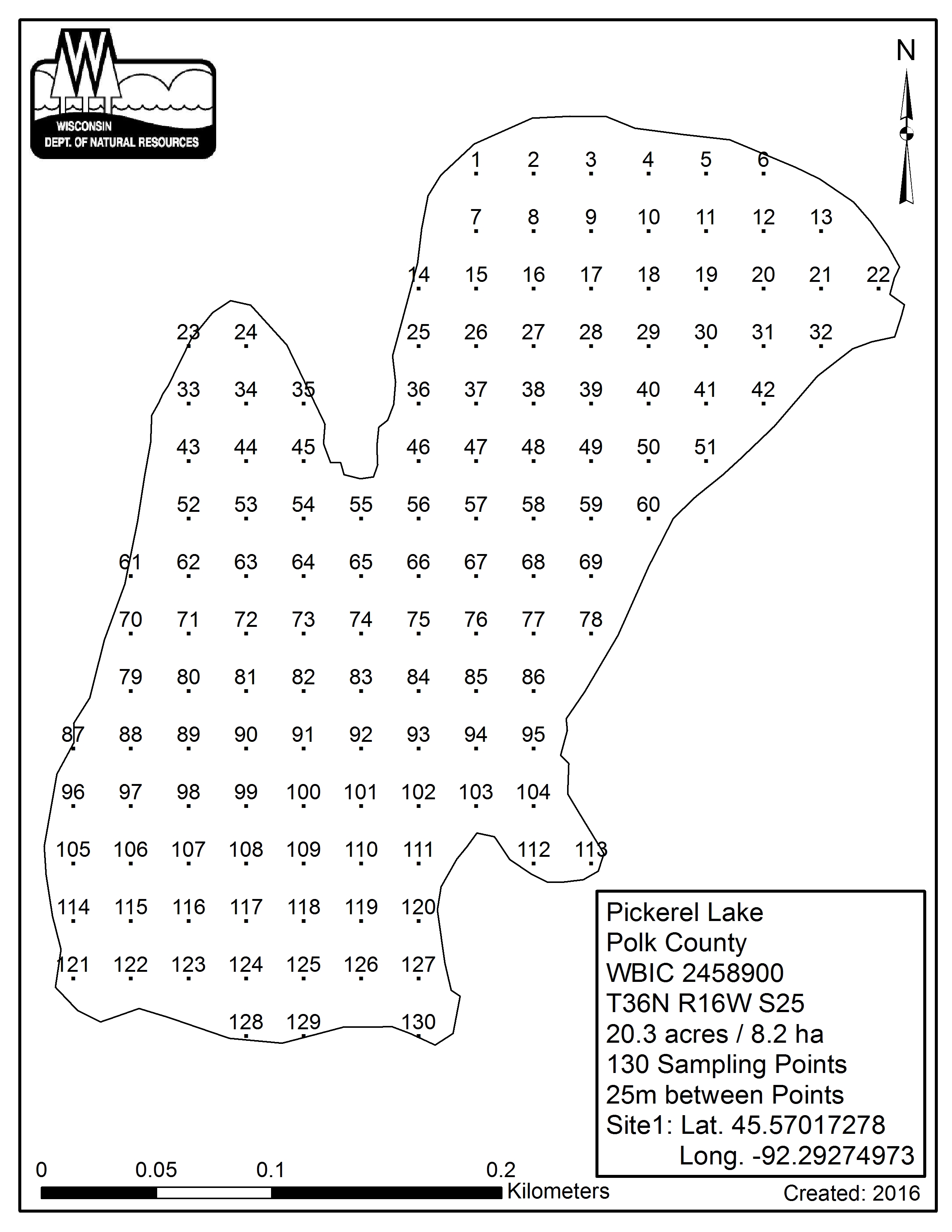 Pickerel Lake, Polk County - Aquatic Plant Sampling Map (25 mpts)