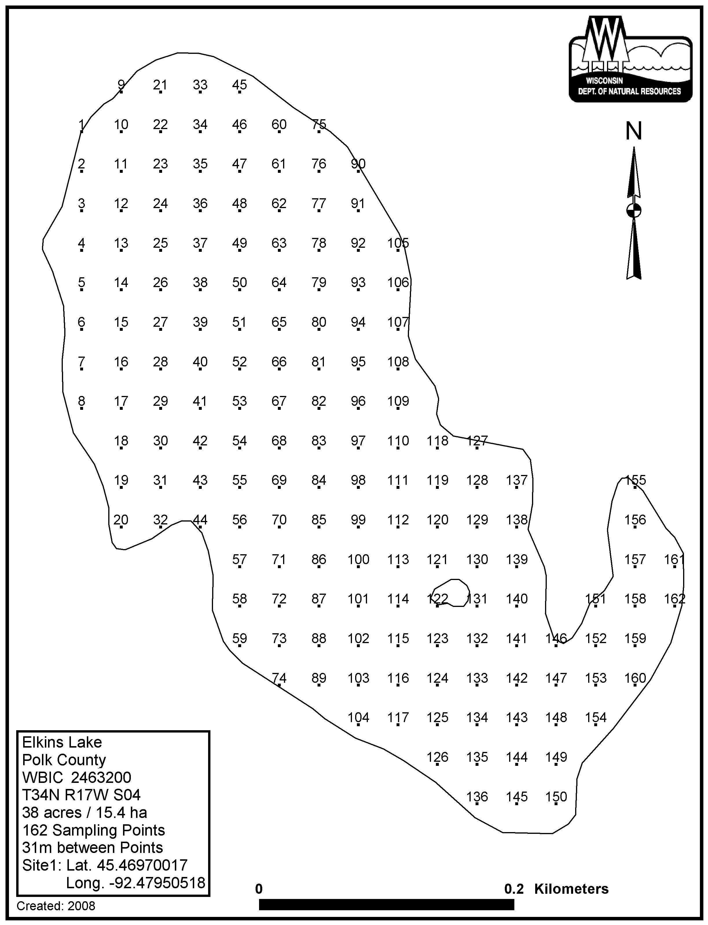 Elkins Lake, Polk County - Aquatic Plant Sampling Map (31 mpts)