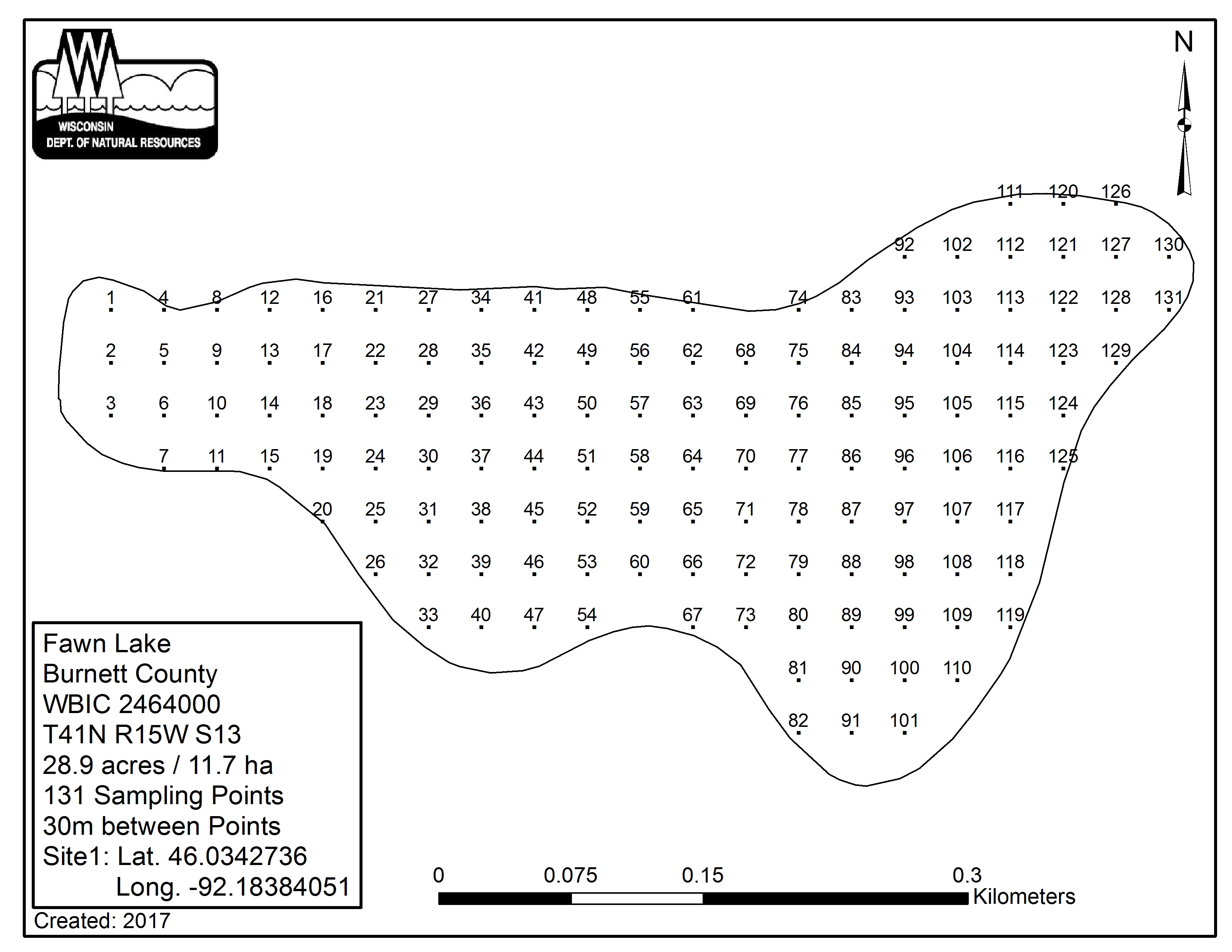 Fawn Lake, Burnett County - Aquatic Plant Sampling Map (30 mpts)