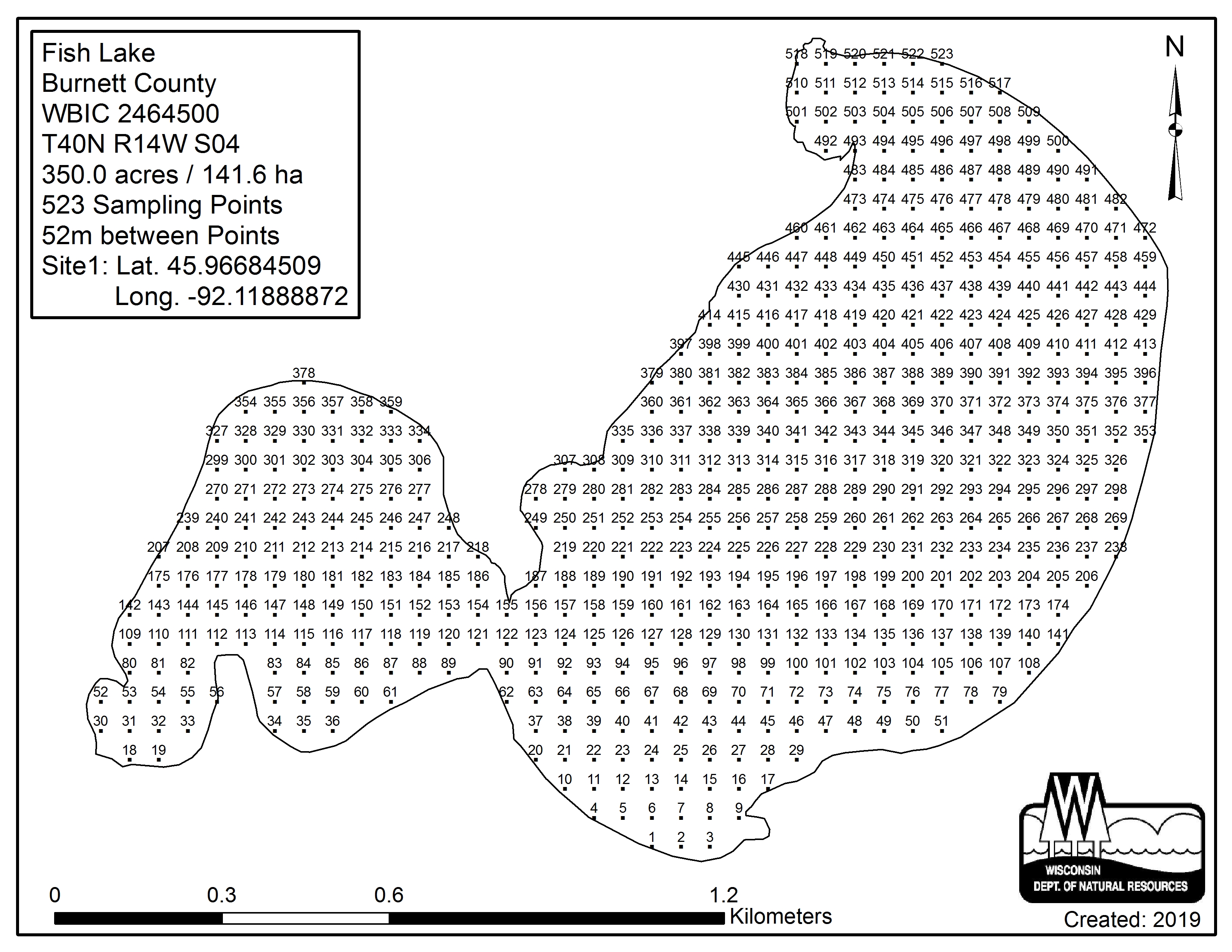 Fish Lake, Burnett County - Aquatic Plant Sampling Map (52 mpts)