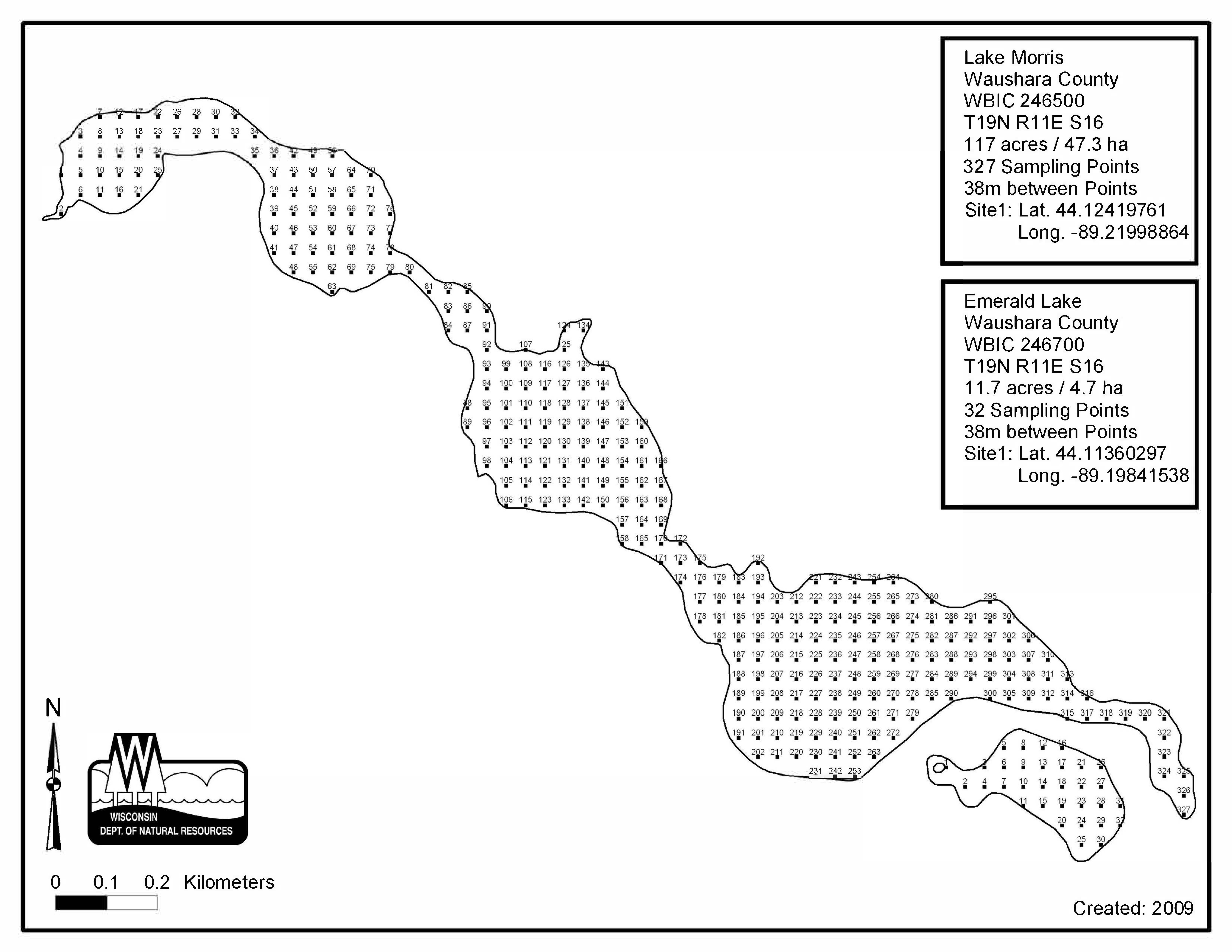 Lake Morris, Waushara County - Aquatic Plant Sampling Map (38 mpts)
