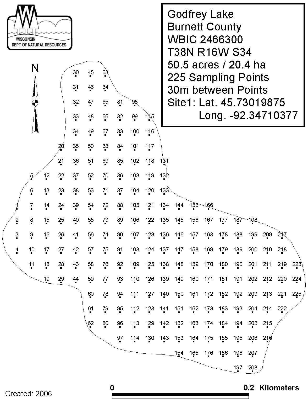 Godfrey Lake, Burnett County - Aquatic Plant Sampling Map (30 mpts)