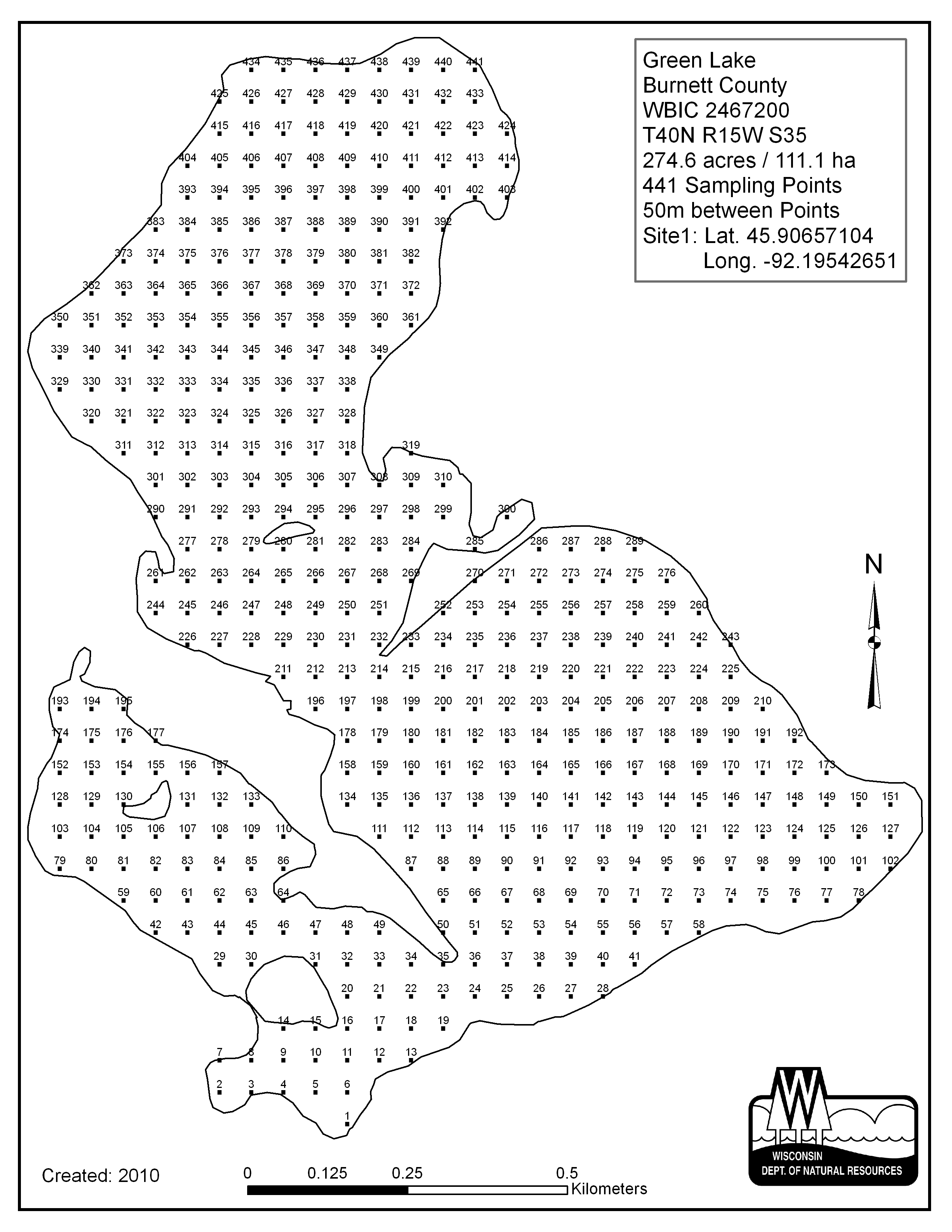 Green Lake, Burnett County - Aquatic Plant Sampling Map (50 mpts)